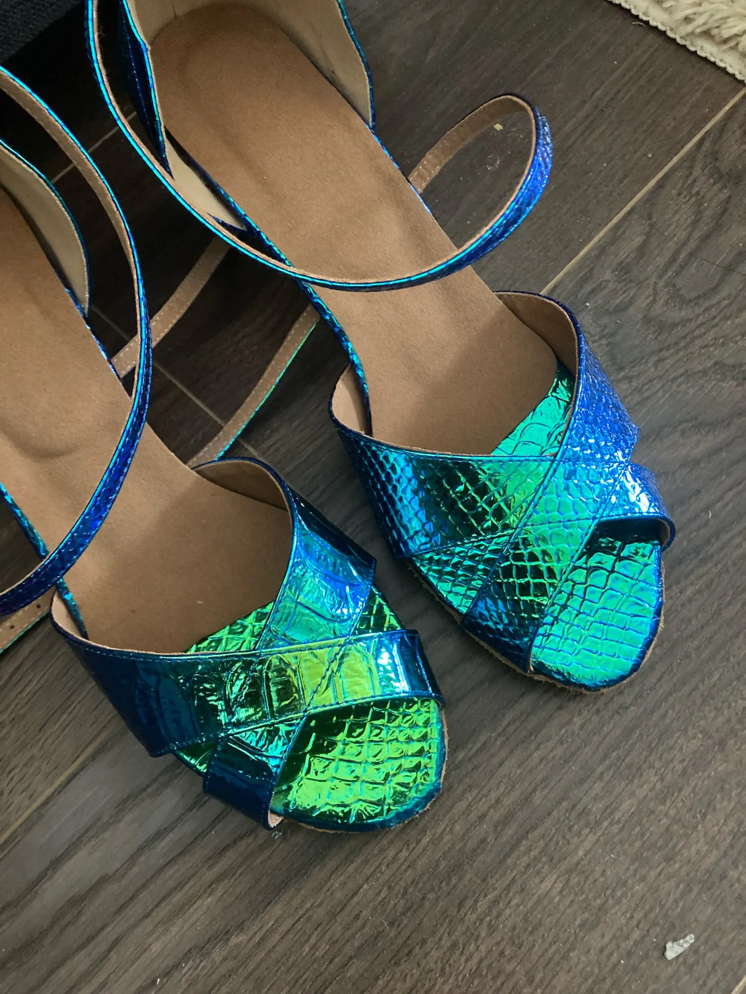 Туфли женские для латиноамериканских танцев, хамелеон блестящий, дл...