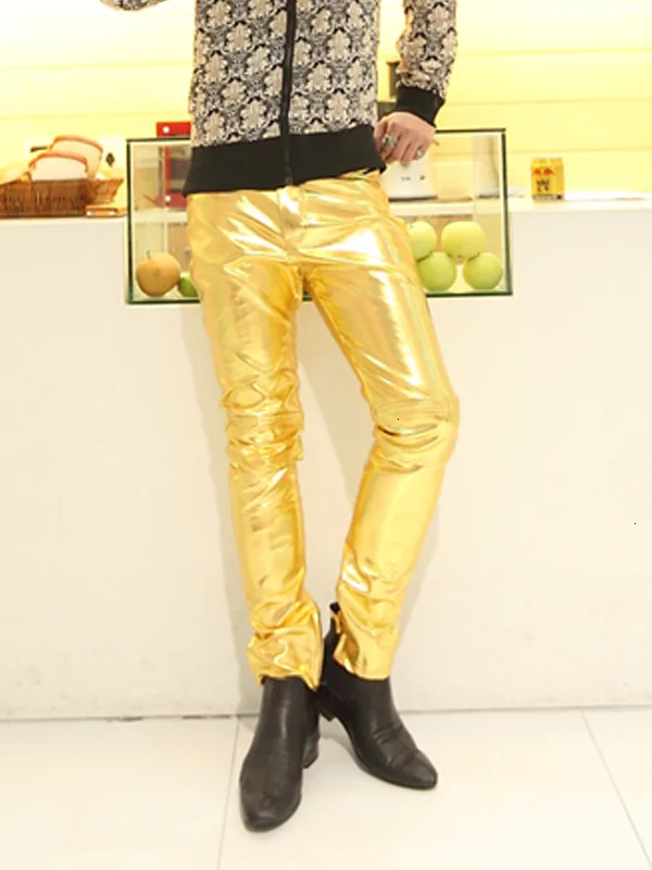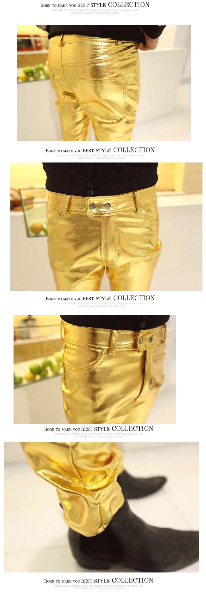 Мужские вечерние Брюки серебристого и золотого цвета, брюки для ночного клуба, сценический костюм, блестящие металлические панталоны для танцев, De Travail Pour Homme