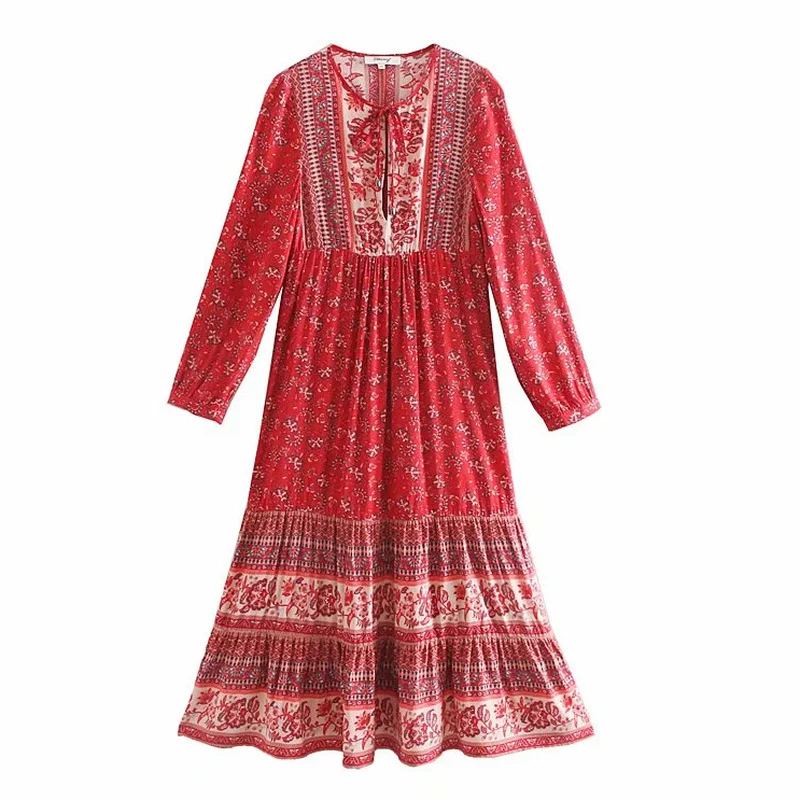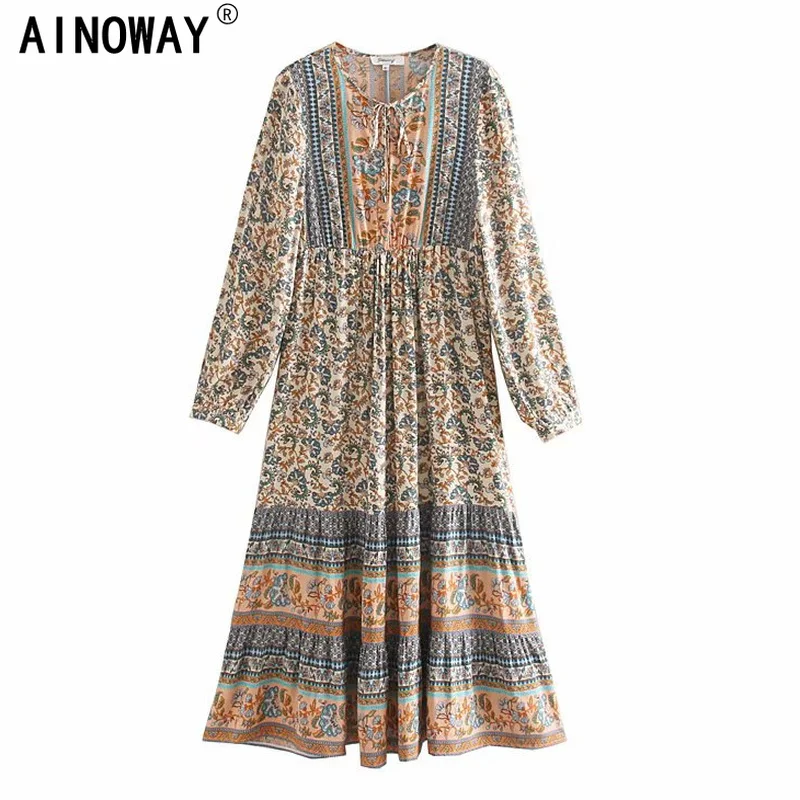Винтажное шикарное модное женское платье в стиле хиппи с цветочным ...