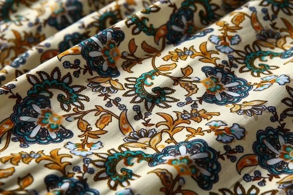 Винтажное шикарное женское платье в стиле хиппи с цветочным принтом...