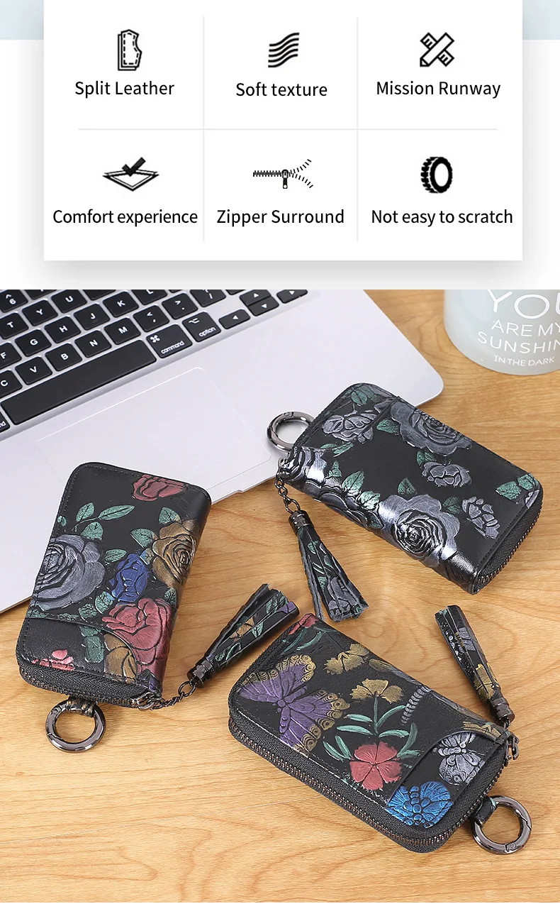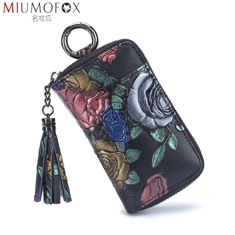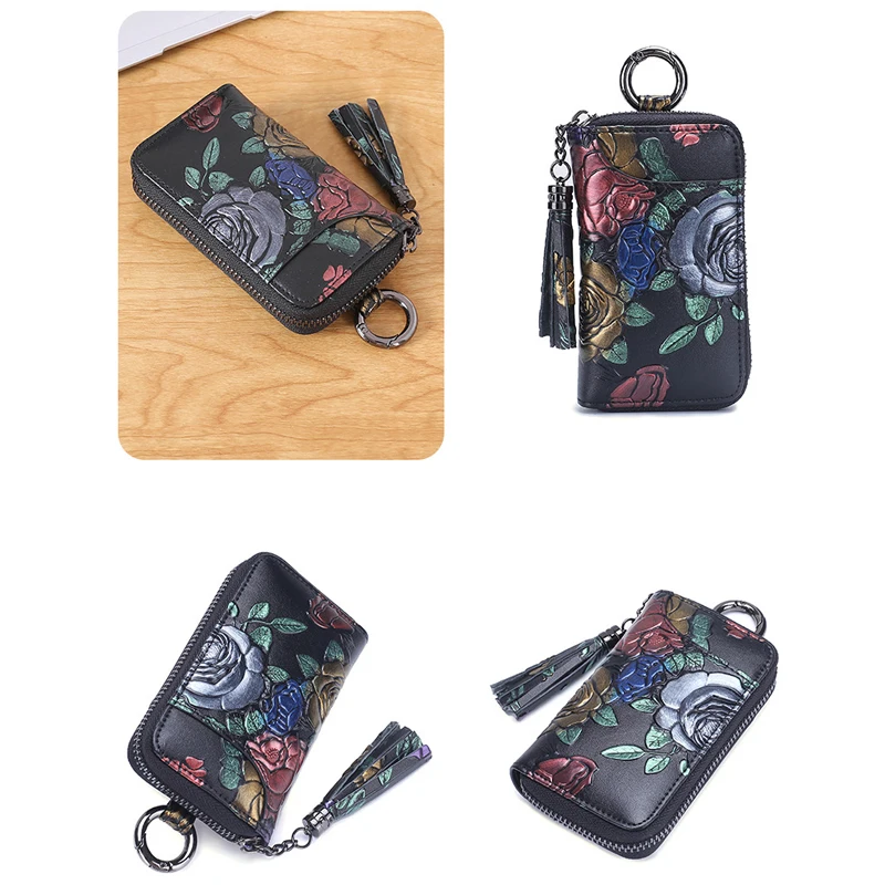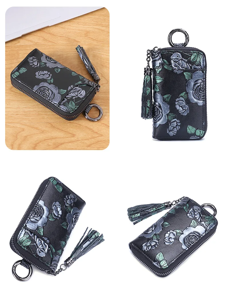 Новинка 2022, держатель для ключей из натуральной кожи с рисунком розы, Карманный Кошелек, органайзер для ключей, брелок для ключей для мужчин и женщин, чехол для ключей, портмоне