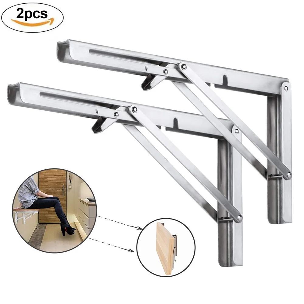 2 шт.упак. 1012 дюймов складные кронштейны для полки из нержавеющей стали DIY настенный кронштейн для полки Экономия пространства для настольного рабочего стола