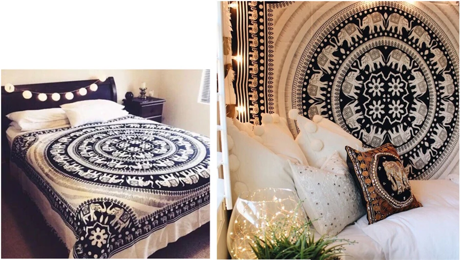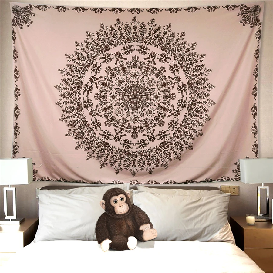 Цветочный розовый ковер в стиле бохо, настенный гобелен, мандала, Индия, богемский, слон, психоделический, хиппи, домашний декор