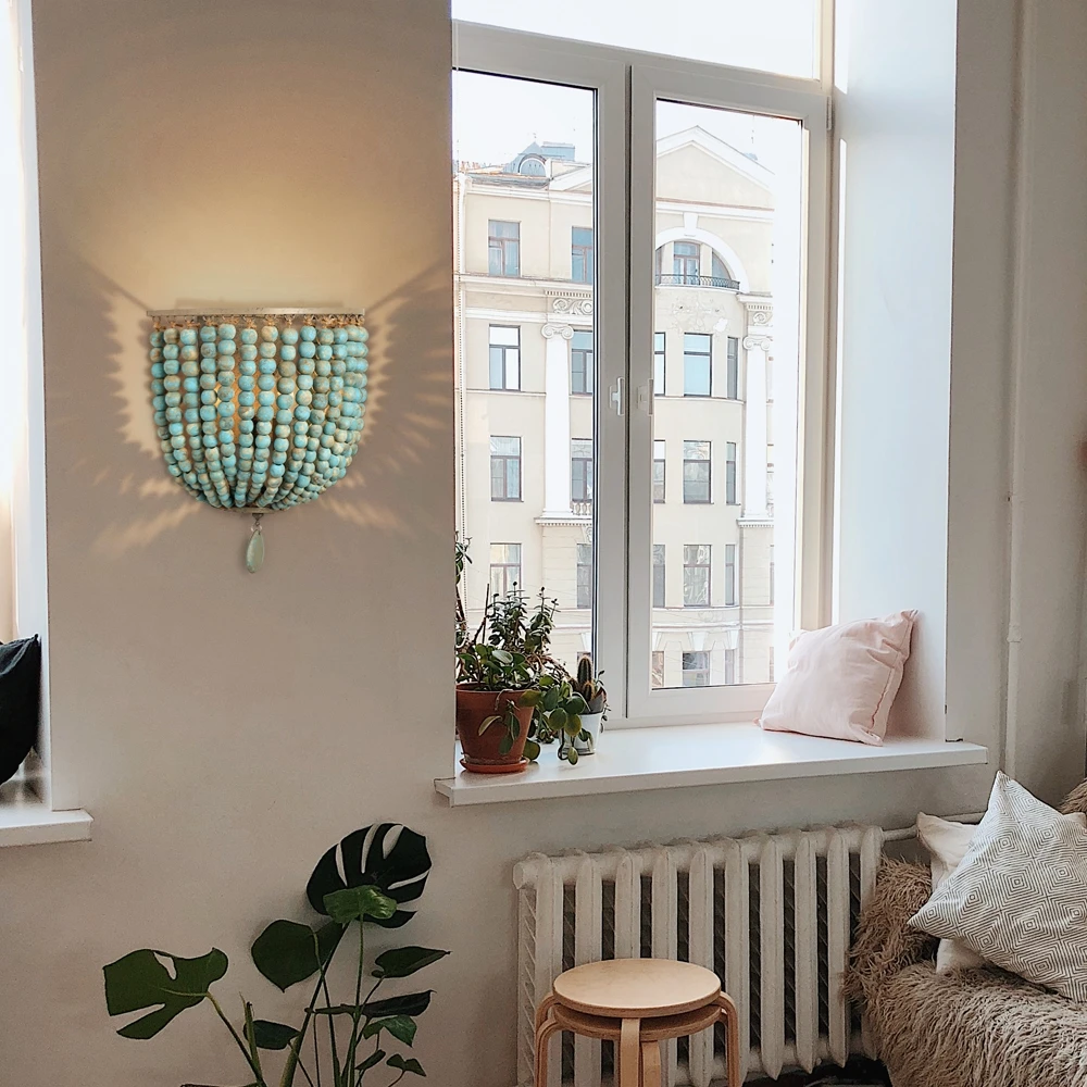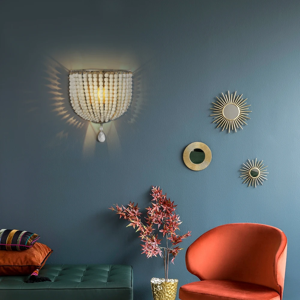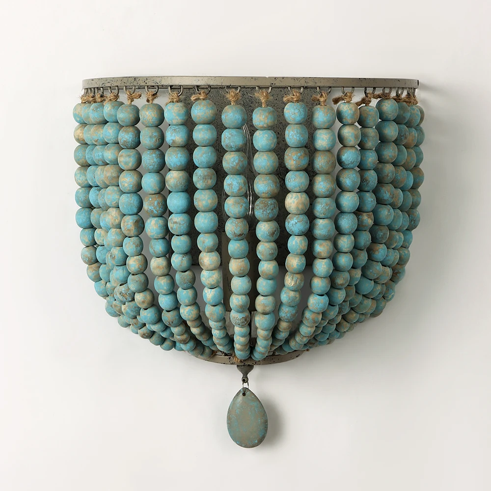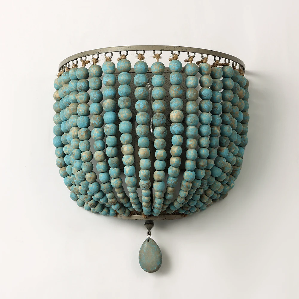 Скандинавская настенная лампа E2726 деревянных бусин в стиле ретро, индивидуальный светильник для коридора, спальни, прикроватного столика, ресторана, бара, красящие огни