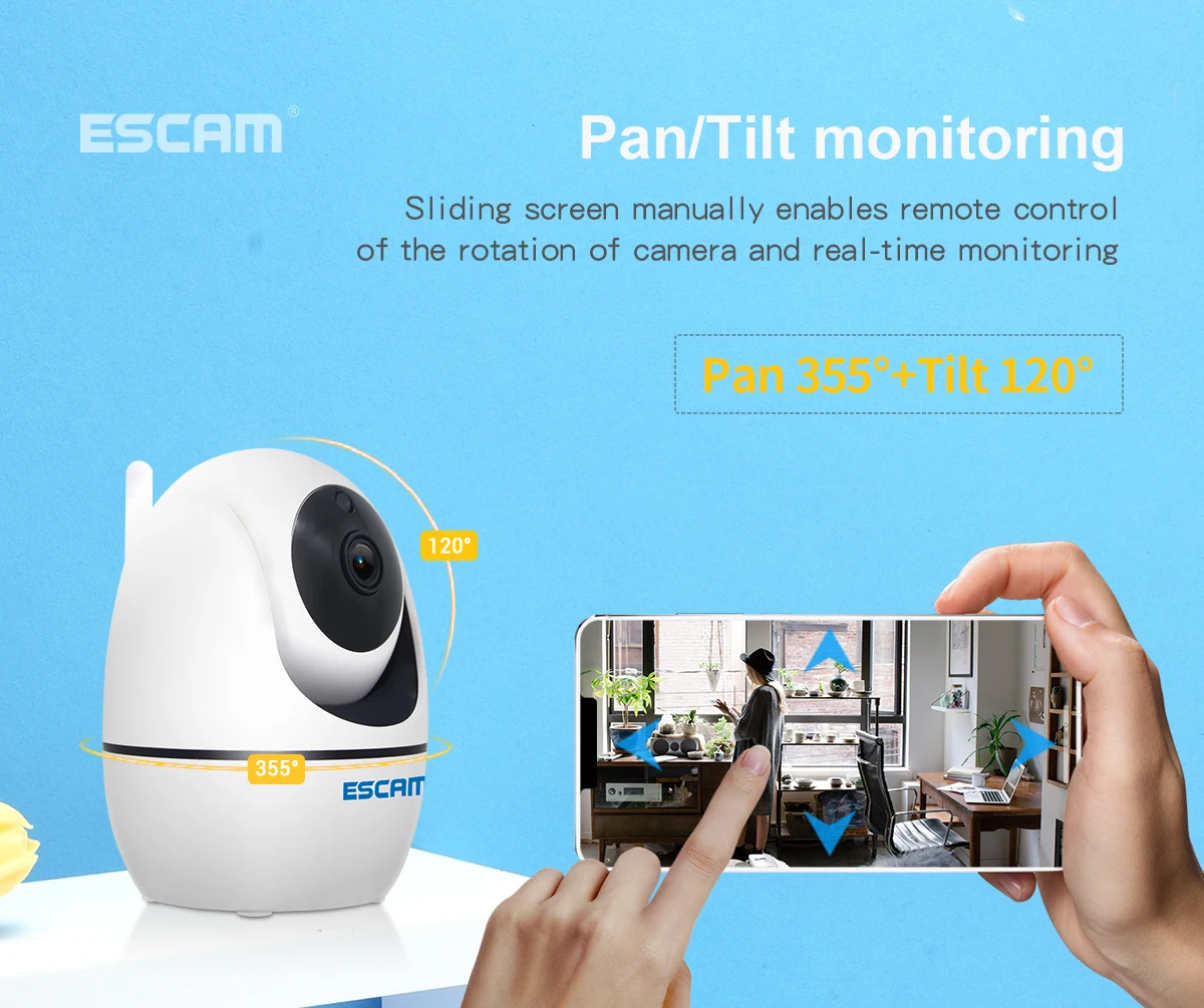 8. Поддержка панорамирования и наклона, панорама 355 ° + наклон 120 °