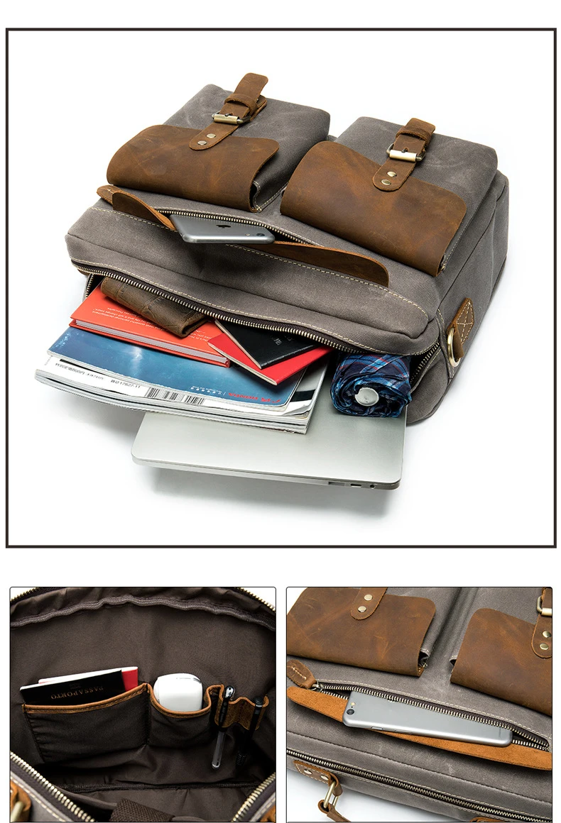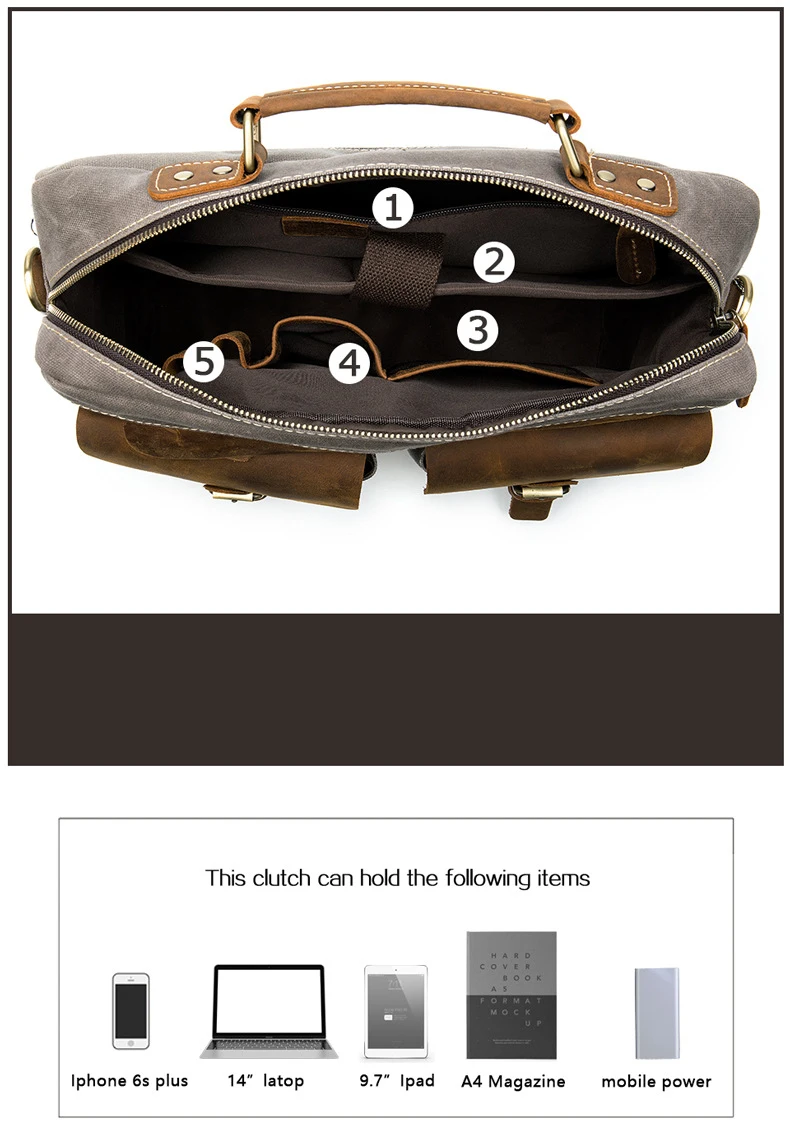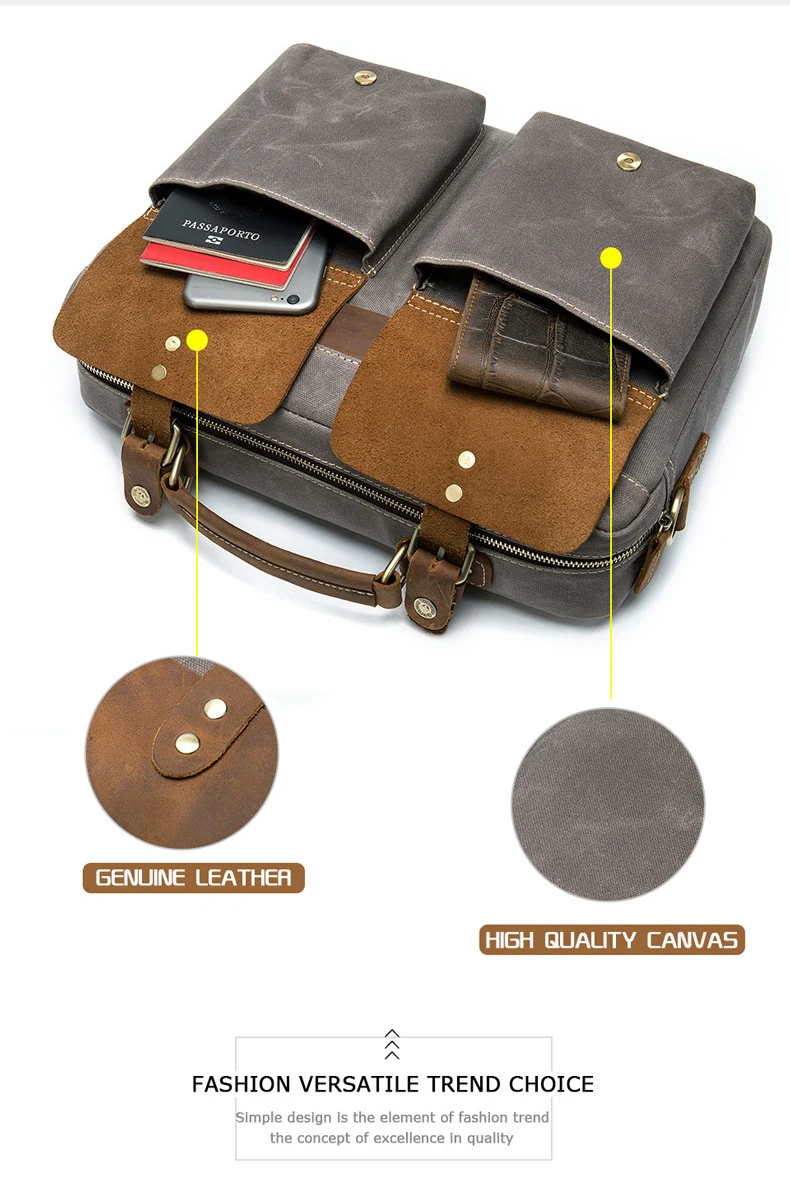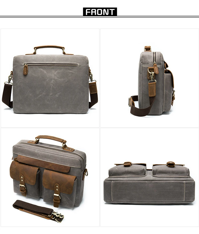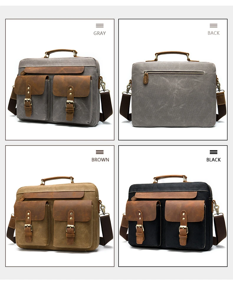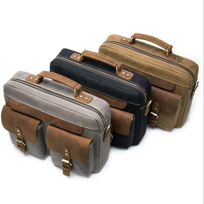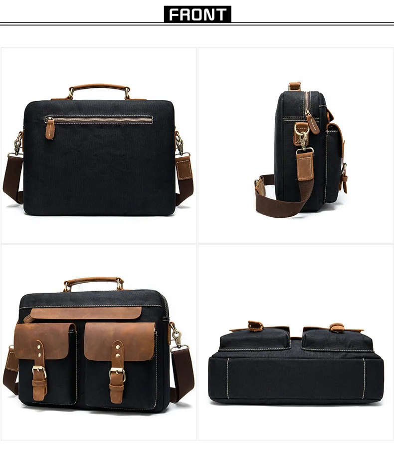Холщовая Сумка для мужчин и женщин, портфель для ноутбука 14 дюймов, кожаный, школьный портфель, Повседневная сумка на плечо
