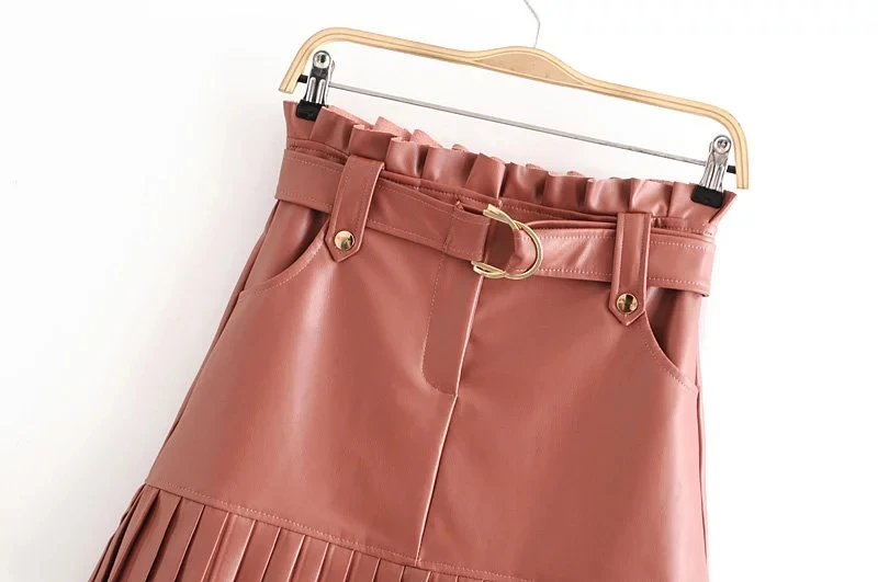 Сексуальная черная юбка из искусственной кожи, Женская юбка с высокой талией, Женская мини-юбка kawaii с поясом, шикарная плиссированная юбка, Корейская Зимняя юбка