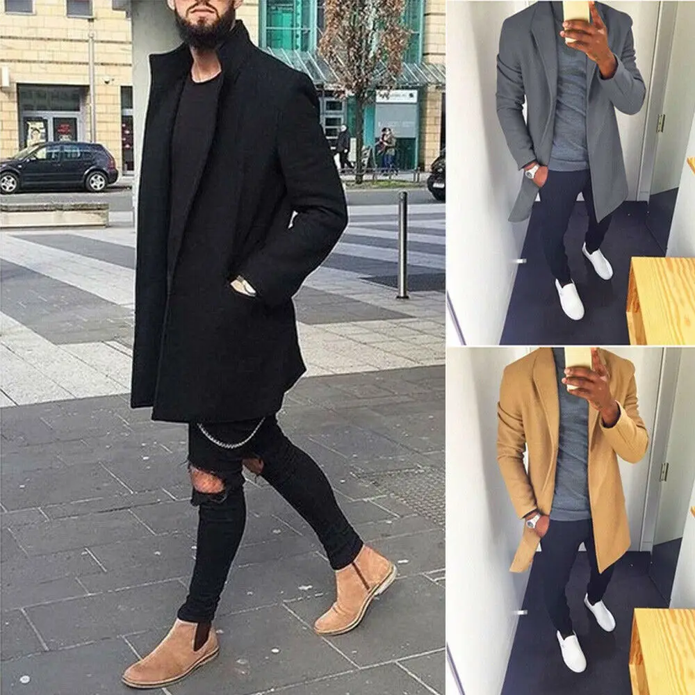 Осенне-зимнее мужское повседневное пальто, плотный шерстяной Тренч, деловая Мужская однотонная Классическая верхняя одежда средней длины, куртки, топы