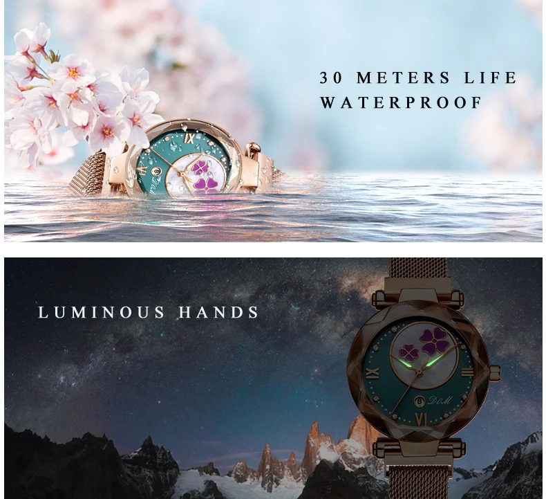 Часы DOM женские, кварцевые, водонепроницаемые, стальные, с цветком