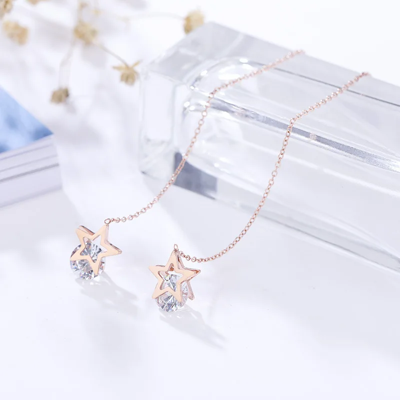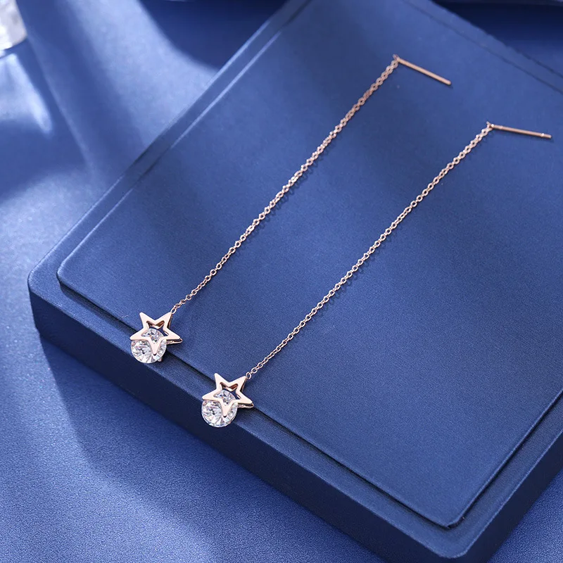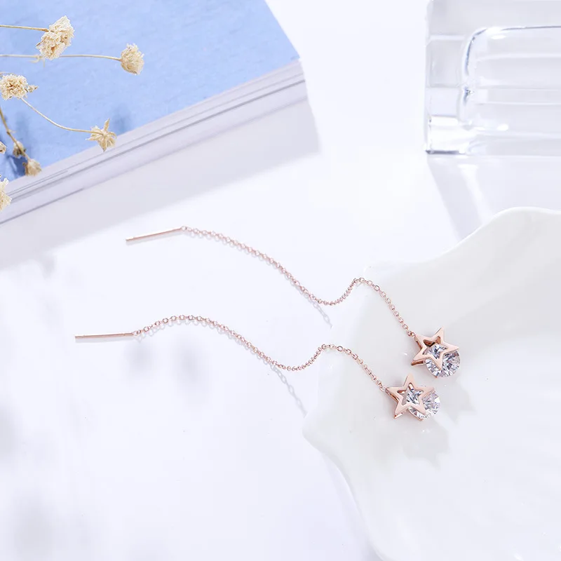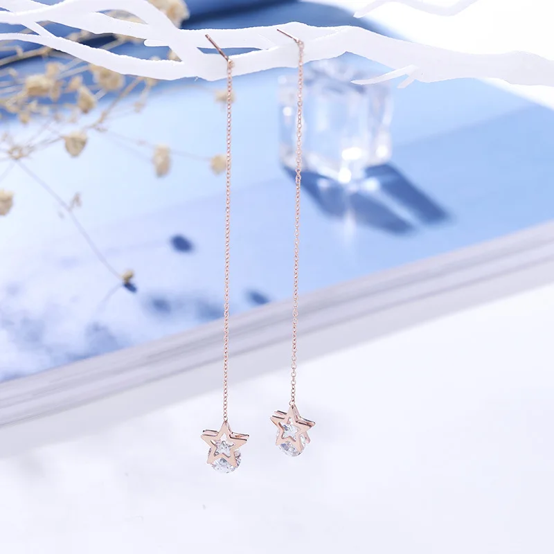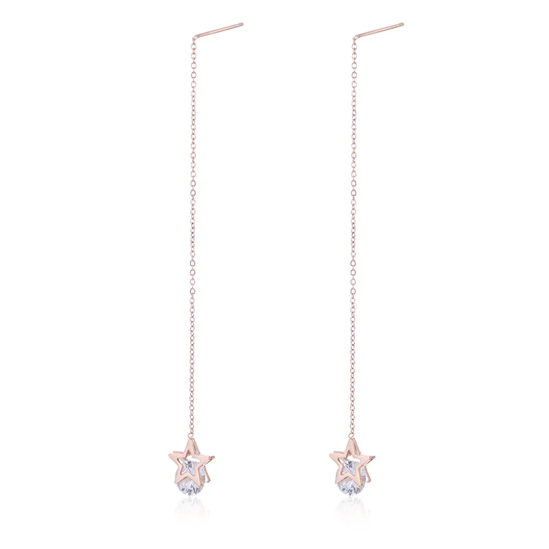 YiKLN модные серьги-подвески из титановой стали с фианитами и кристаллами для женщин Висячие серьги из розового золота с кисточками ювелирные изделия YE20005