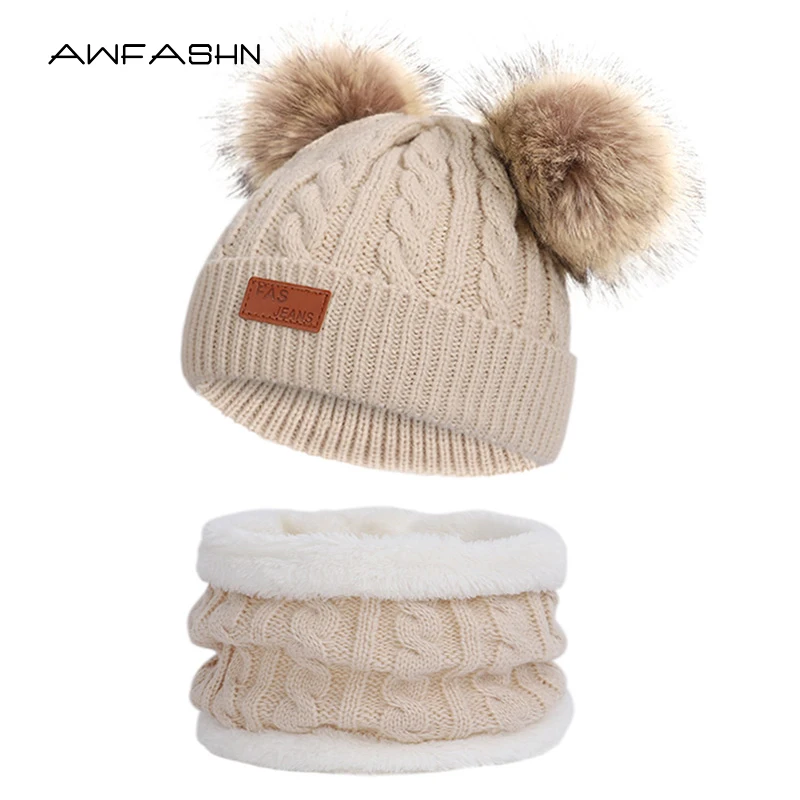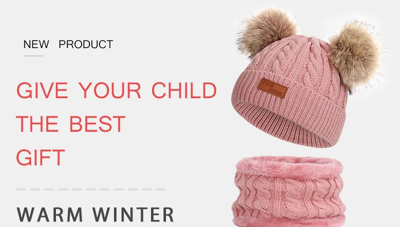 Детские шапки, детская шапка, шарф, комплект из 2 предметов, зимняя вязаная Милая шапка для мальчиков и девочек, детская повседневная однотонная теплая шапка, хлопковая шапочка