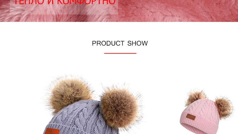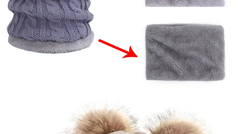 Детский зимний теплый костюм, вязаная шапка, шарф, шапка с помпоном...
