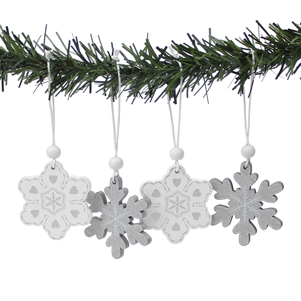 Деревянная подвеска-Снежинкаелка HUADODO 12 шт.компл., рождественские украшения для рождественской елки, домашвечерние, подарок для детей