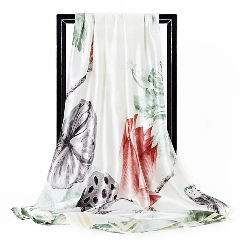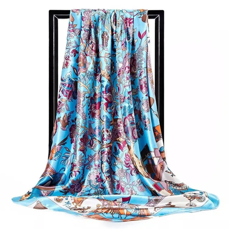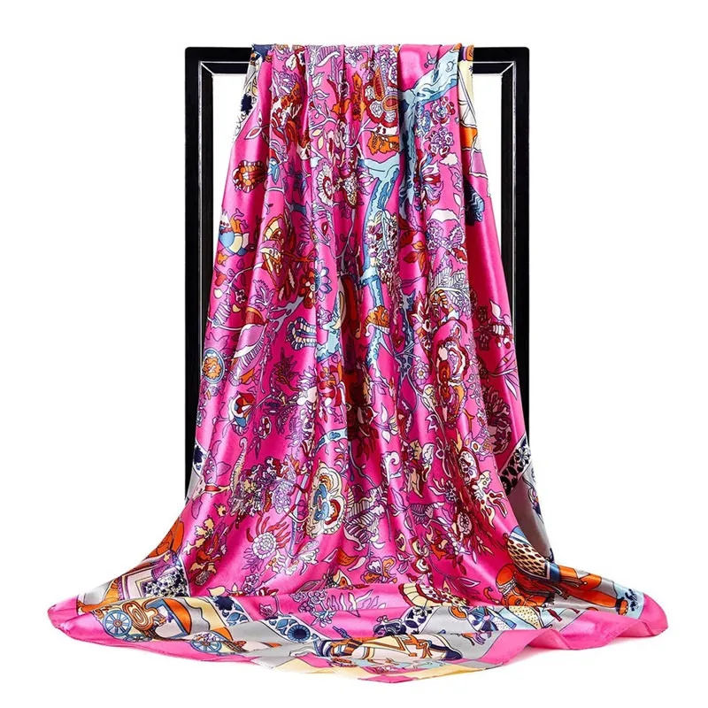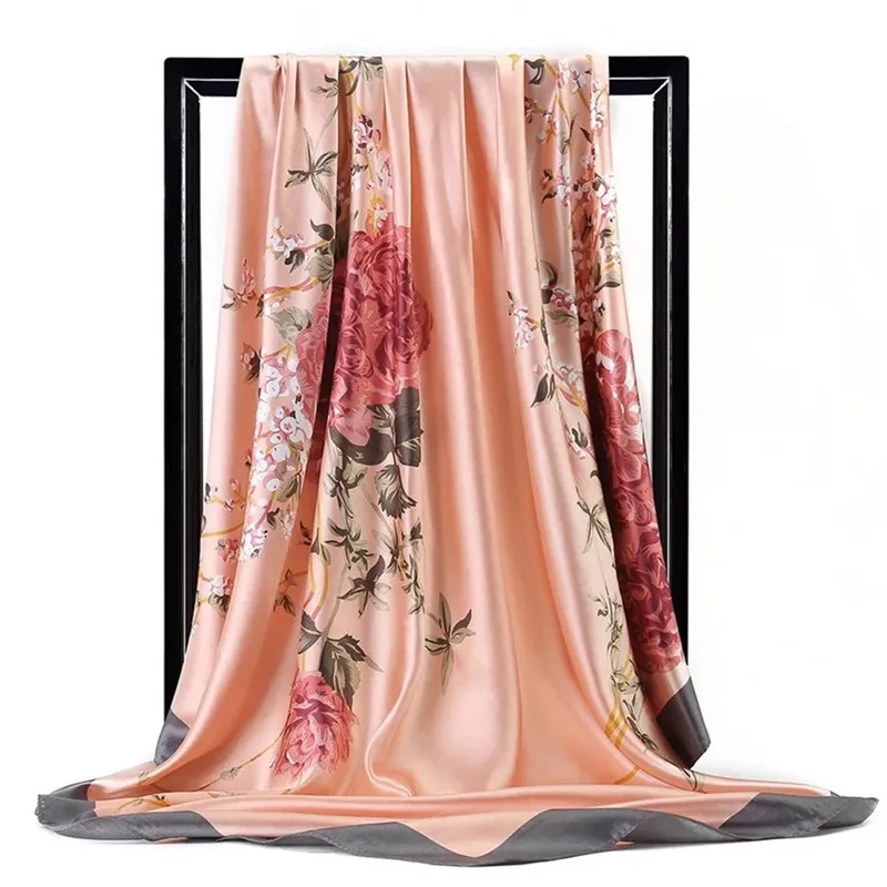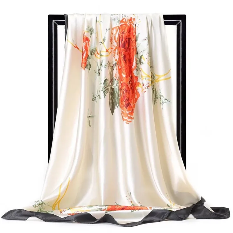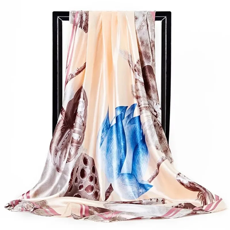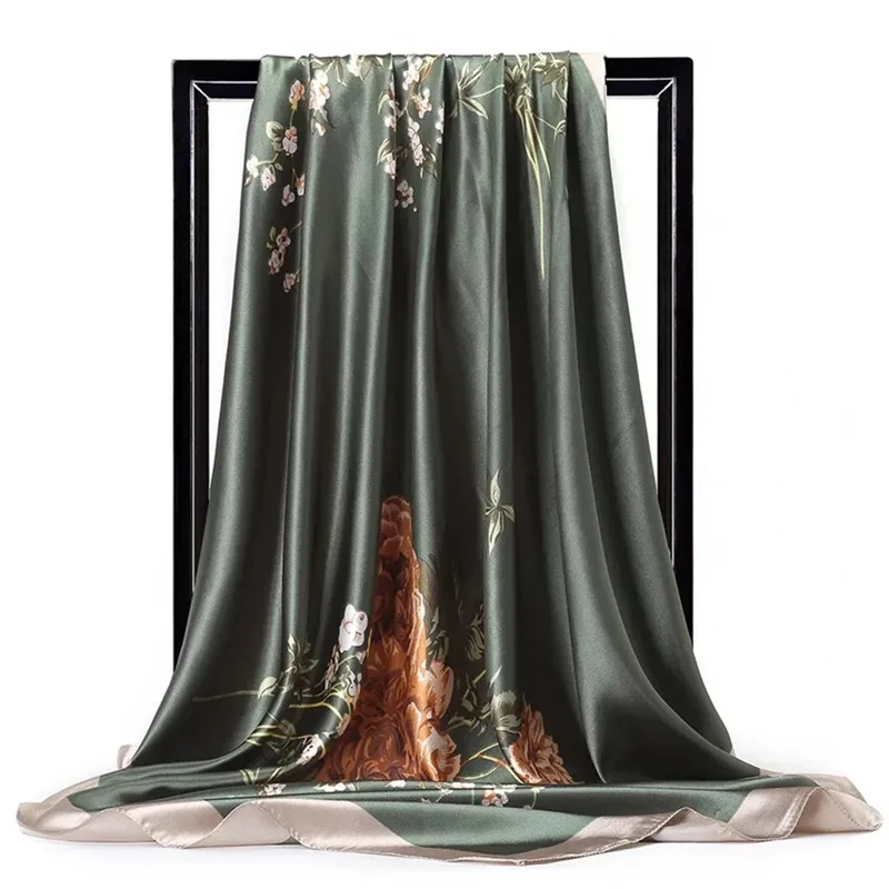 Женская атласная шаль с цветочным принтом, квадратный платок 90 х90...