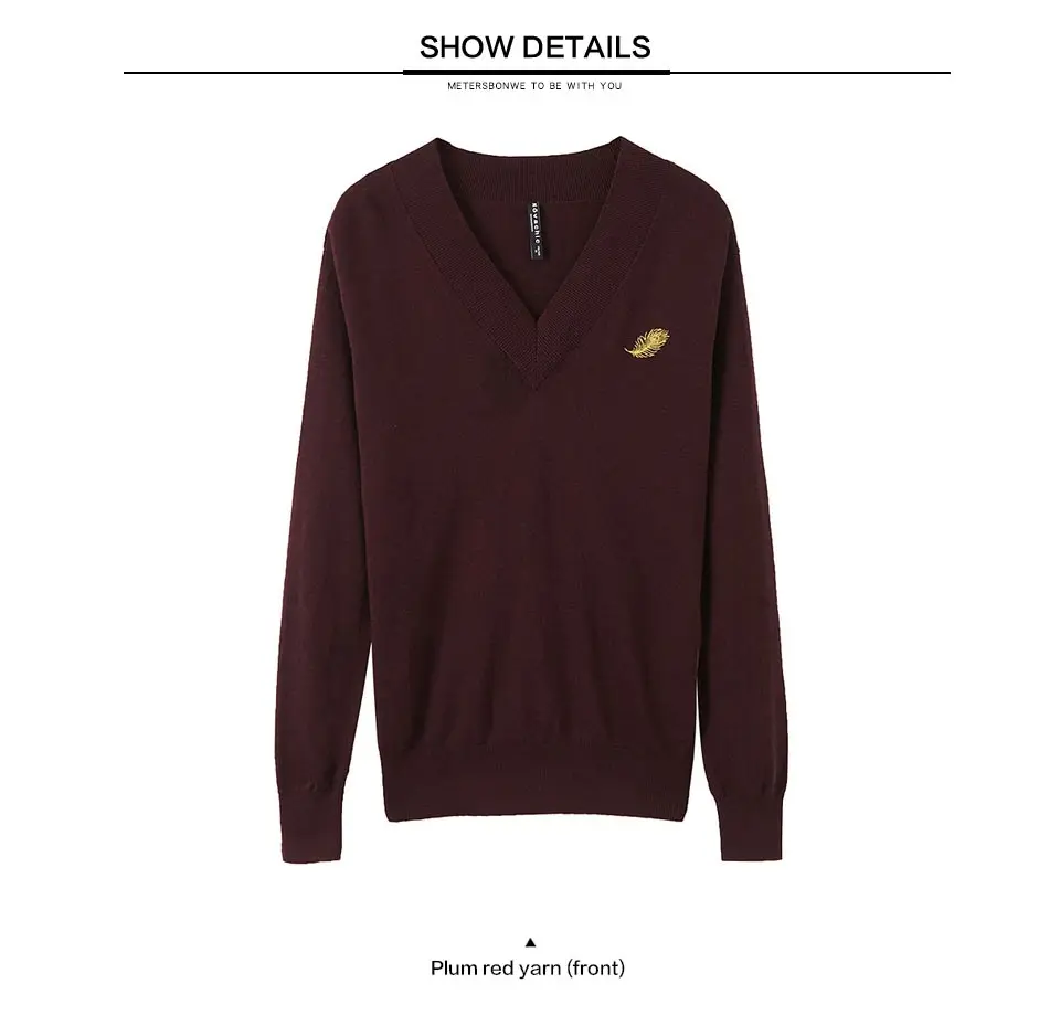 Metersbonwe Новый брендовый базовый свитер для мужчин осенний модный вязаный мужской хлопковый свитер с длинным рукавом и v-образным вырезом одежда высокого качества