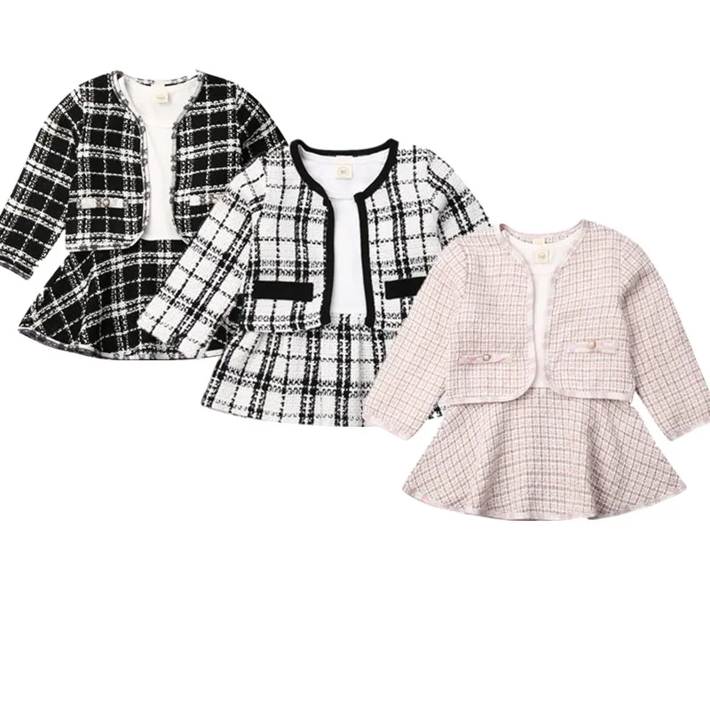 Новое Детское клетчатое пальто и платье-пачка для маленьких девочек праздничная одежда комплект из 2 предметов