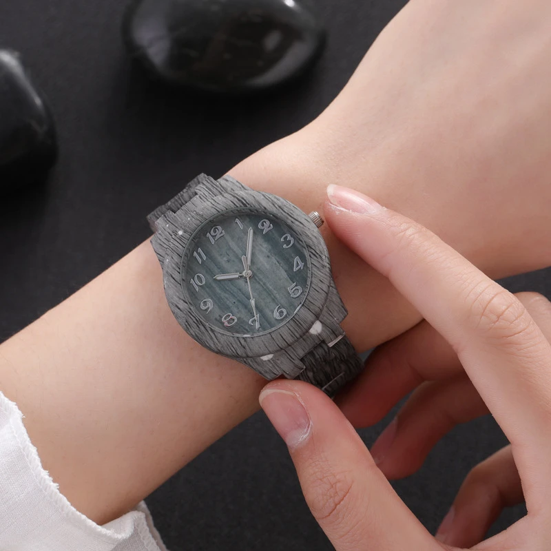 Часы наручные мужские из нержавеющей стали, Модные нейтральные кварцевые, с имитацией дерева, без логотипа
