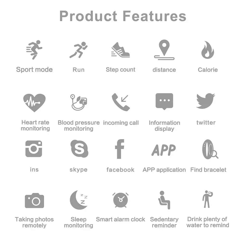 Группа 4 смарт-браслет Tech Экран сердечного ритма крови Давление мониторинг сна спортивные часы для M4 смарт-браслет Технические характеристики: Основной чип управления: Telink8266 Вибрация: тишина/вибрация Водонепроницаемый уровень: IP67 Совместимые системы: Android 4,4 и выше, iOS 8,0 и выше Особенности: пульс, кровяное давление, кислород в крови Размер экрана: 0,96 дюймов HD цветной экран TFT 80*160 Экран Тип: ЖК-дисплей Тип батареи: полимерная литиевая батарея Емкость аккумулятора: 90 мАч Способ зарядки: выделенный usb-кабель для зарядки Время зарядки: около 2 ч Срок службы: 10 дней использования (в зависимости от частоты использования и частоты толчка) Хранение данных: 7 дней истории данных браслетов; Более 7 дней хранения данных APP Метод управления: одно касание Внешний вид Материал: передняя оболочка: PC, задняя оболочка: ABS + PC, ремешок на запястье: защита окружающей среды TPE Цвет: черный, синий, красный Упаковочный лист: 1 * M4 умный Браслет 1 * кабель для зарядки 1 * Инструкция