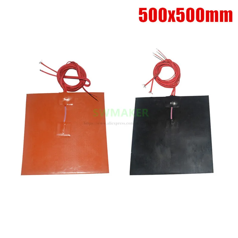 Нагревательный стол для 3D-принтера, 500x500 мм, оранжевыйчерный цвет, 1000 Вт, силиконовый резиновый нагреватель, 500*500 мм, электрическая грелка