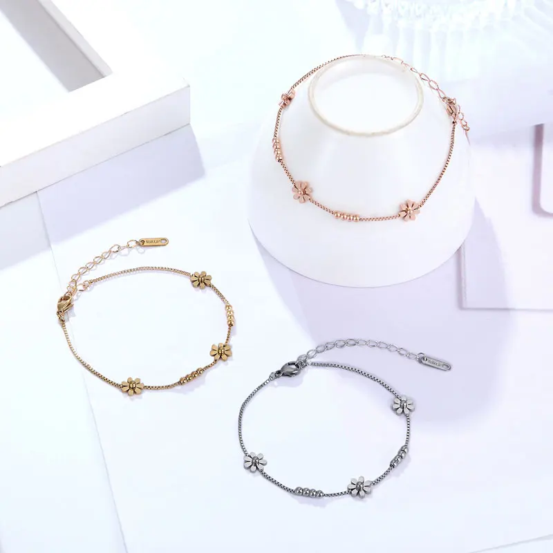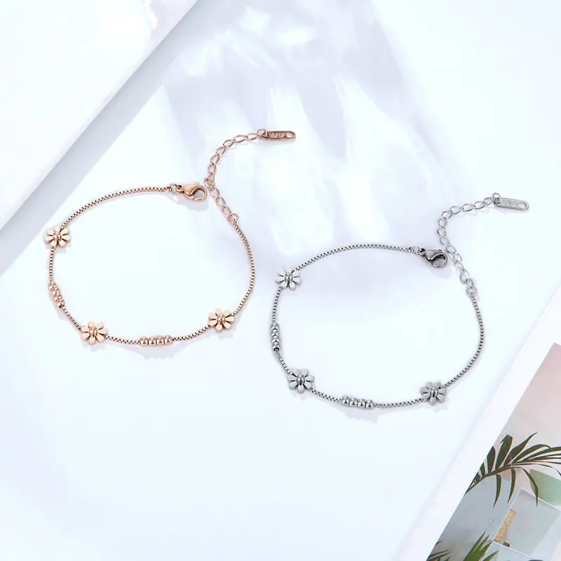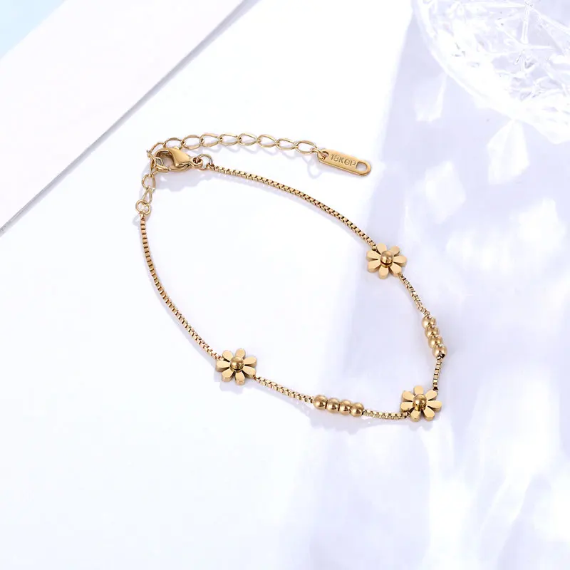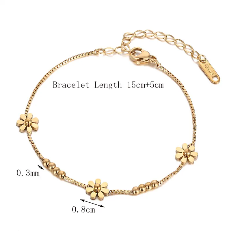 Браслет-цепочка из нержавеющей стали для женщин и девушек, красивый браслет с ромашками, подарочное золотистое Ювелирное Украшение