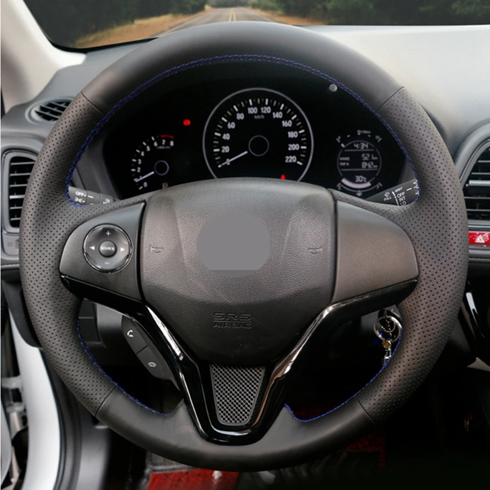 Сделай сам черного цвета из натуральной кожи чехол рулевого колеса автомобиля для Honda Fit 2014-2019 город 2014-2019 HR-V вариабельности сердечного ритма 2016 Джаз 2014-2019