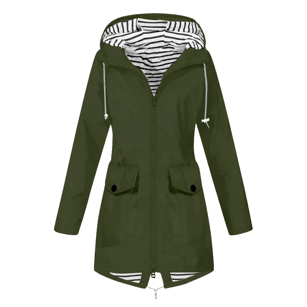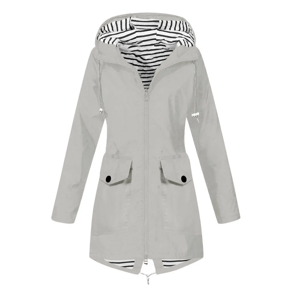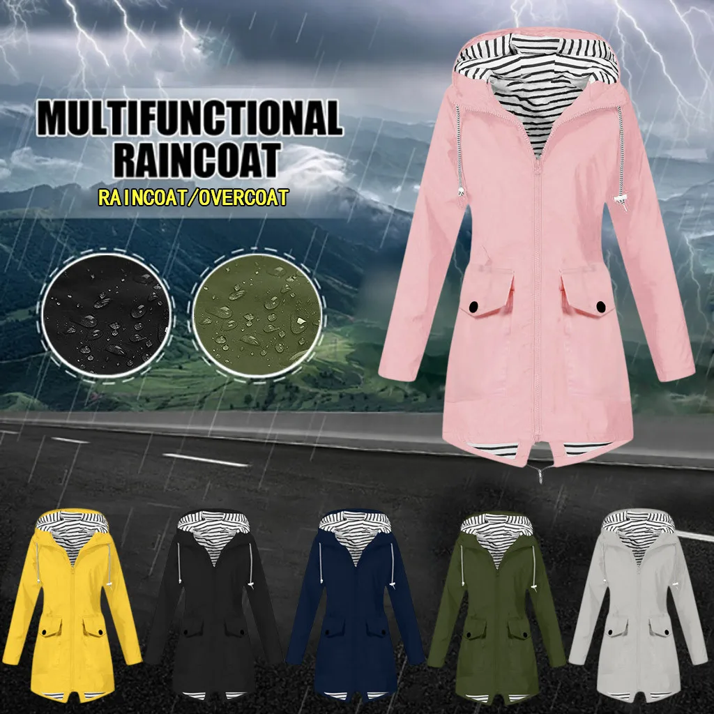 Женский однотонный дождевик для улицы размера плюс, водонепроницаемая ветрозащитная Свободная куртка с капюшоном