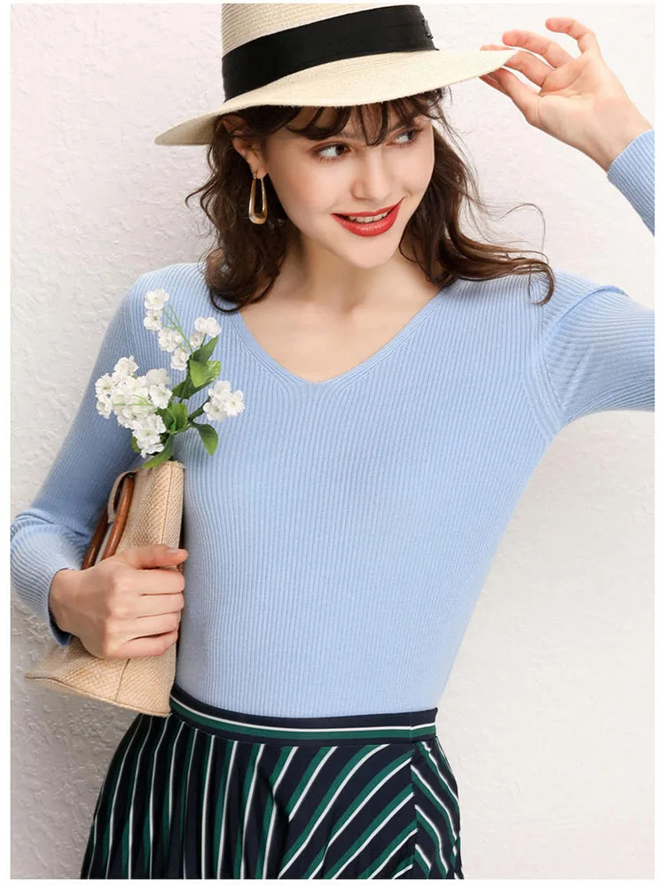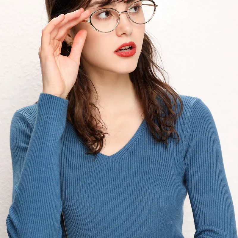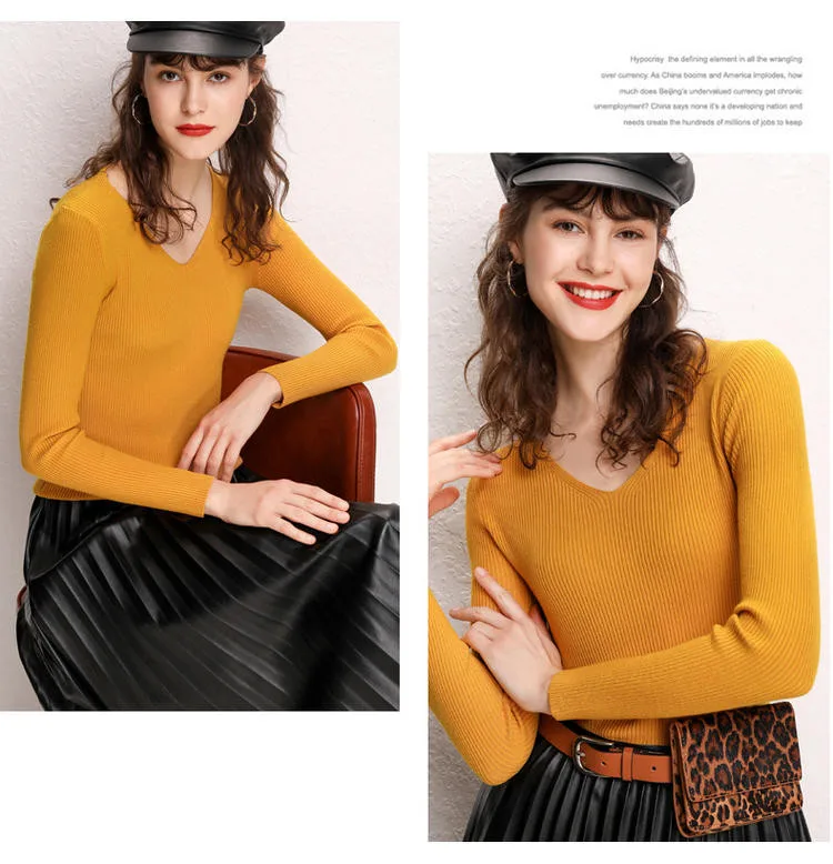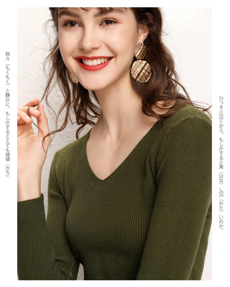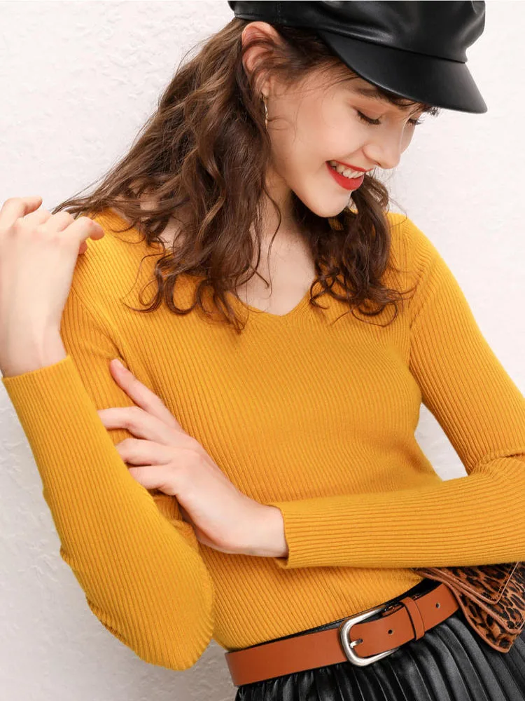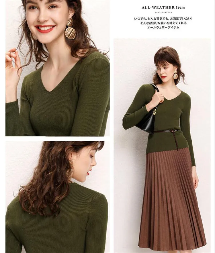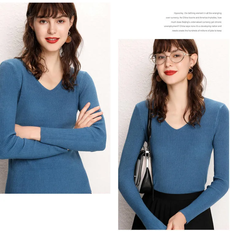 Женский кашемировый джемпер GCAROL, стрейчевый свитер с V-образным вырезом, вязаный пуловер с содержанием шерсти 30% размера 2XL для офиса, трикотажный джемпер для осени и зимы