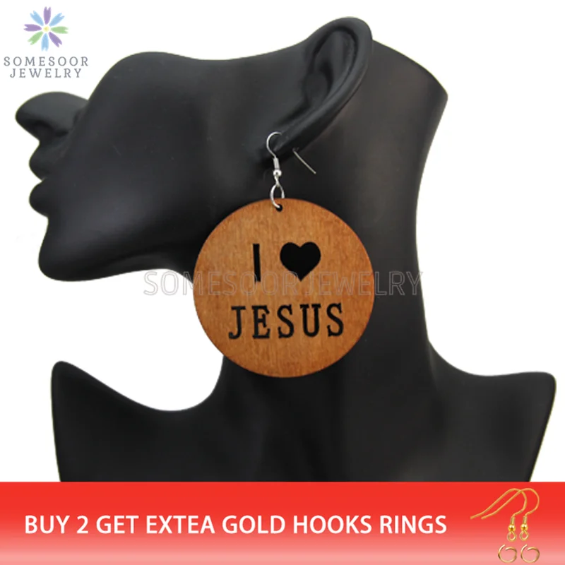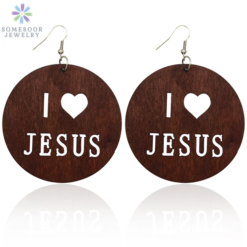 SOMESOOR 6 см коричневые Выгравированные Я люблю Иисуса африканские деревянные висячие серьги лазерная резка деревянные висячие христианские ювелирные изделия для женщин Подарки
