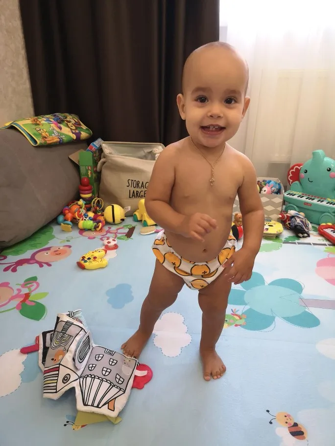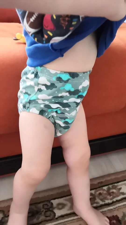 Отличные трусики, попис выдерживают, чуть на резинках могут промокнуть, если не сразу увидишь, что надо менять. Брала серые и такие, серые больше, хотя размер одинаковый 100,сейчас мы 80 см и т10 кг белые уже маловаты в ногах, серые отлично. Использовали в непрерыве 2 мес уже, чуть подзатерлись, стали быстрее просокать, но функцию свою выполняют, спасиьо
