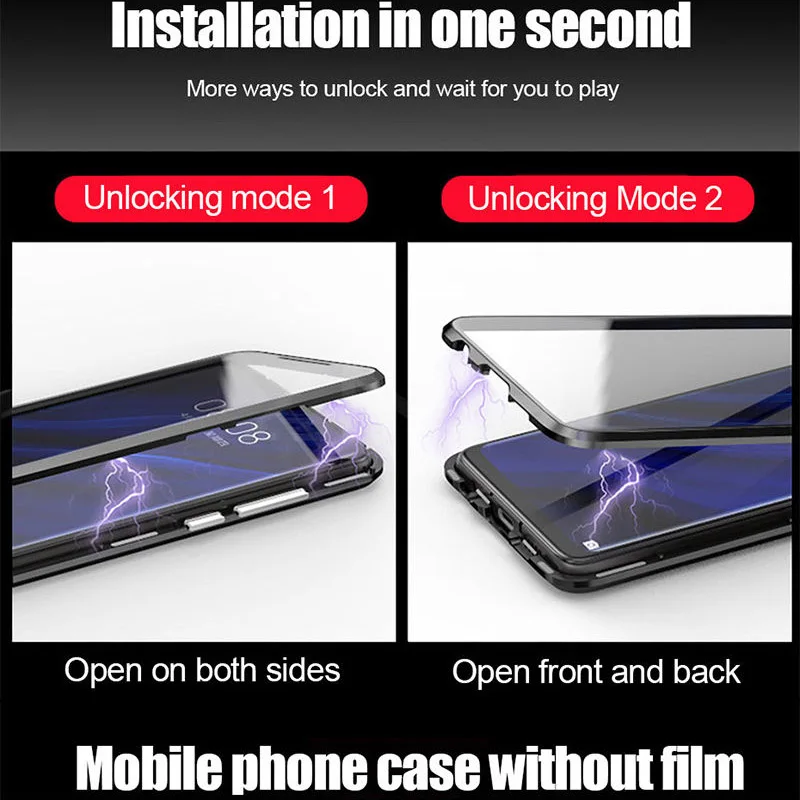 Двухсторонний чехол из закаленного стекла, магнитный металлический ...