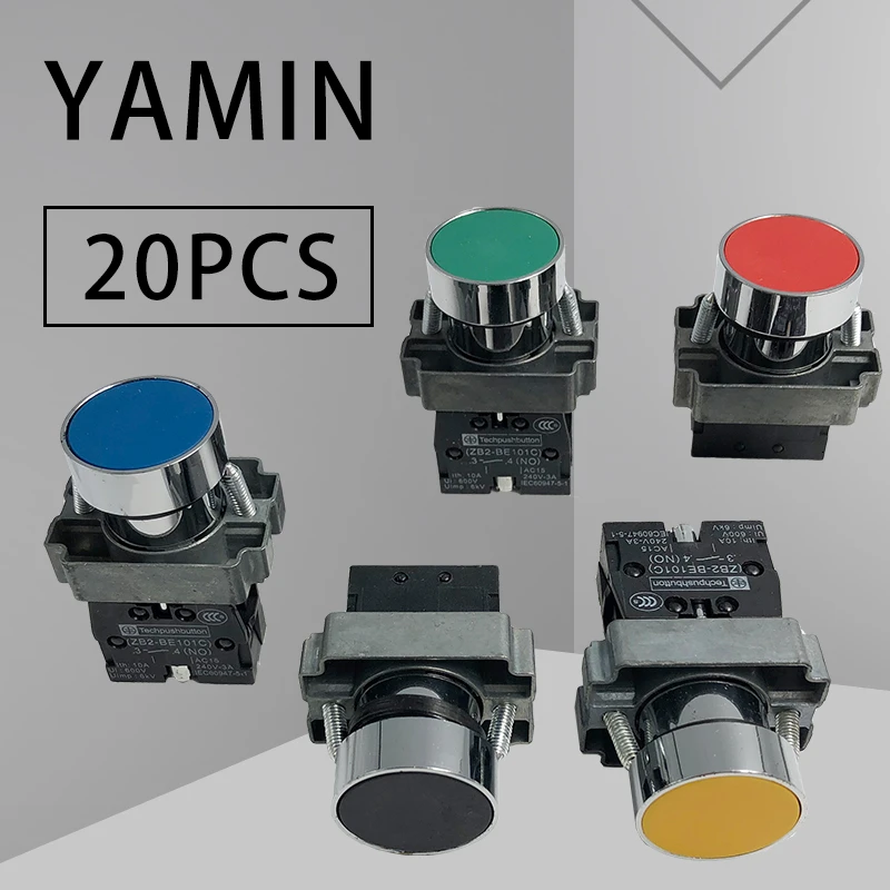 20 шт. 22 мм Мгновенный переключатель кнопка сброса XB2-BA35C плоские электрические винты красныйжелтыйзеленыйсинийчерный 1NO