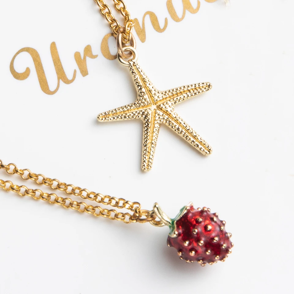 Женщины Ожерелье Мультфильм Фруктовые Цветы Кошка Морская Звезда Колье Ожерелья Подвески Для Девочек Дети Морковь Кокосовый лист Макарон Цветок солнца Ромашка Золотая цепочка Ожерелье Ювелирные изделия Подарки