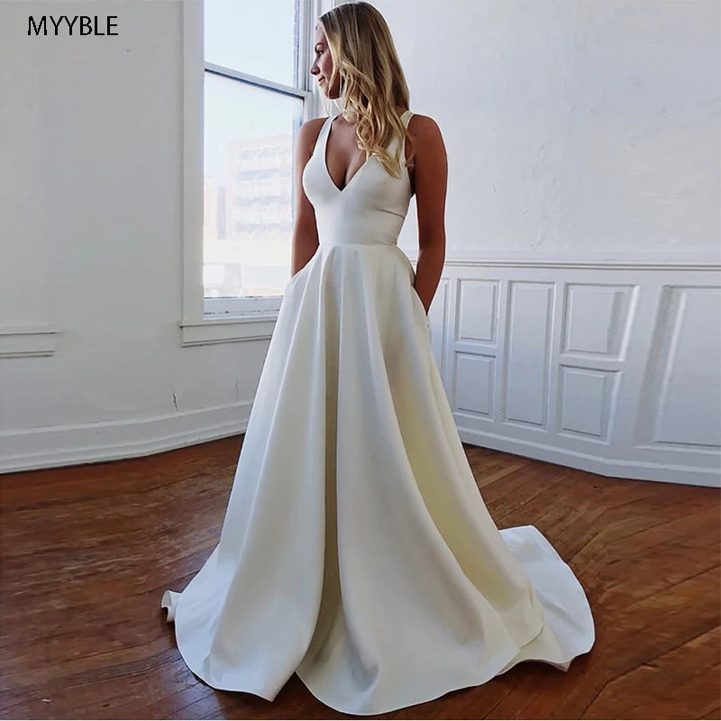 Женское платье с V-образным вырезом, недорогое платье невесты, 2022