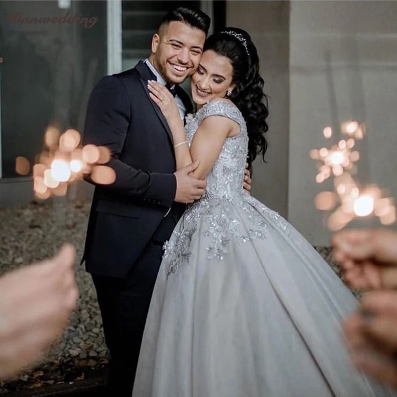 Винтажное Тюлевое свадебное платье с вырезом лодочкой и шлейфом, Кружевная аппликация из бисера, бальное платье на шнуровке, свадебное платье, новое поступление
