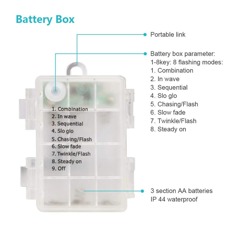 12 м 100 светодиодный светильник на солнечных батареях, веревка, трубчатый светильник, наружный сад, Рождественская гирлянда, на батарейках, светодиодный светильник феи, водонепроницаемая полоса Универсальный пульт дистанционного управления:-8 режимов освещения: Комбинация; В волне; Последовательный; Slo glo; Чеканка/вспышка; Медленное выцветание; Мерцание/вспышка; Устойчивый;-10 уровней яркости: различные яркости создают различные эффекты украшения и атмосферу.-Режим таймера: после активации индикатор автоматически включится на 6 часов и выключится на 18 часов.-Один пульт дистанционного управления может управлять несколькими огнями одновременно. Пожалуйста, направьте пульт дистанционного управления на чехол аккумулятора. Декоративное Применение:Украшение ваших садовых растений, двора, коридора, лестницы, патио, рождественской елки. Эта веревка с проволочной веревкой сделает ваш дом романтичным и уютным. DIY ночные светильники: Не стесняйтесь обернуть их край кровати, чтобы сделать прекрасные ночные светильники для вашей спальни; С удаленным рядом, чтобы включить/выключить их, не вылезая из кровати, наслаждайтесь вашей сладкой мечтой! IP65 + IP44 водонепроницаемый:И провод, и чехол для аккумулятора являются водонепроницаемыми, работают хорошо даже в дождливые дни (пожалуйста, не погружайте чехол для аккумулятора в воду), идеально подходят для использования на открытом воздухе. Характеристики:Светодиодный индикатор: 100 светодиодный sСветодиодный цвет: теплый белый/многоцветныйУровень водонепроницаемости: IP65 светильник с веревкой/панель солнечных батарей + чехол для аккумулятора IP44/usb-портыИсточник питания: 3xAA батареи (не входят в комплект)/на солнечной энергии/USB