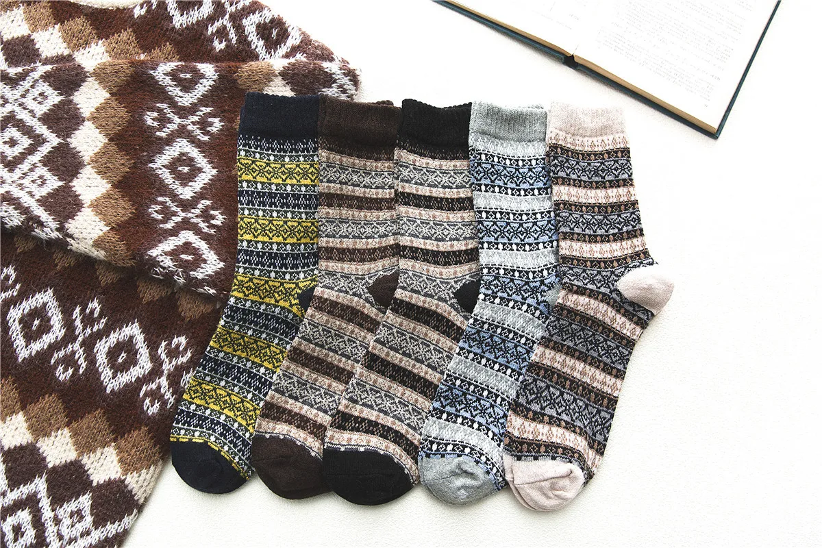 HSS брендовые утепленные шерстяные носки в полоску 5 парлот мужские зимние носки на каждый день Calcetines Hombre носок бизнес американский размер (6,5-12)