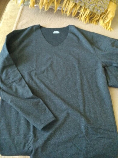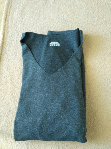 Действительно теплый, v-образный вырез очень широкий и низкий, поэтому он хорошо скрыт, когда вы носите рубашку. Очень мягкий и теплый. Я Рекомендую его.