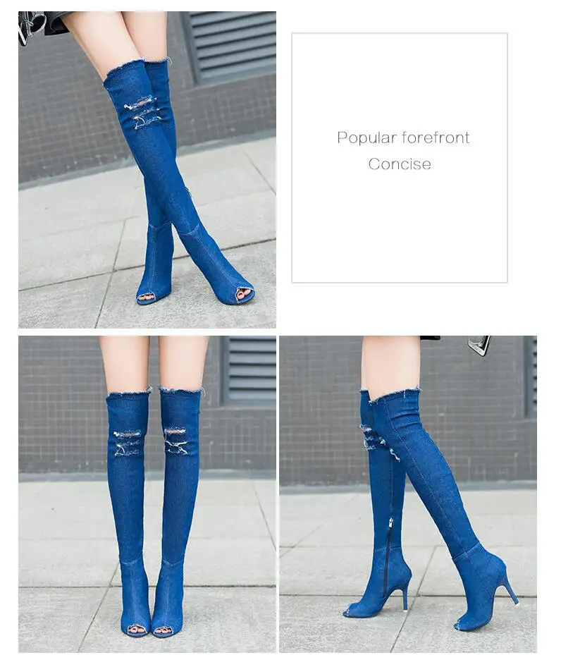 Женские сапоги, высококачественные джинсовые сапоги выше колена, же...