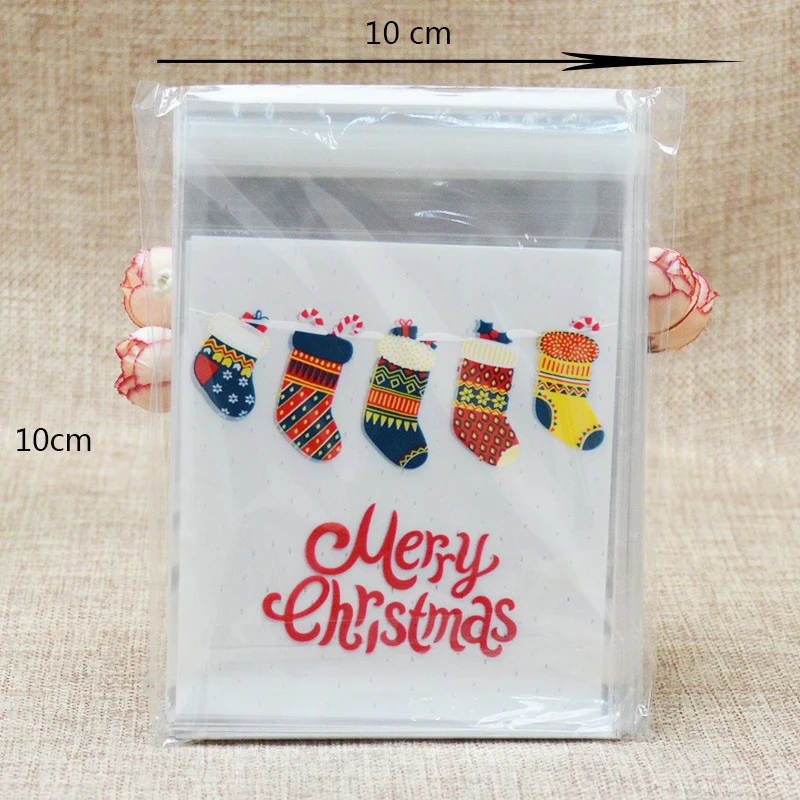 2019 10 шт красочные рождественские носки пластиковые пакеты для упаковки печенья Рождественский самоклеющийся Подарочный пакет конфеты сумка для печенья вечерние украшения