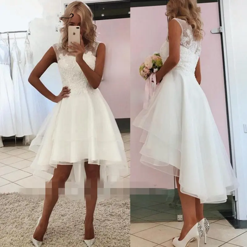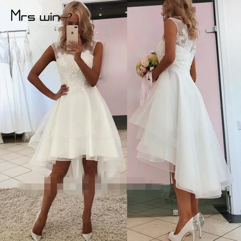 Свадебное платье Mrs win с круглым вырезом, кружевное пляжное свадебное платье, платье с высоким вырезом, Короткое свадебное платье, HR037
