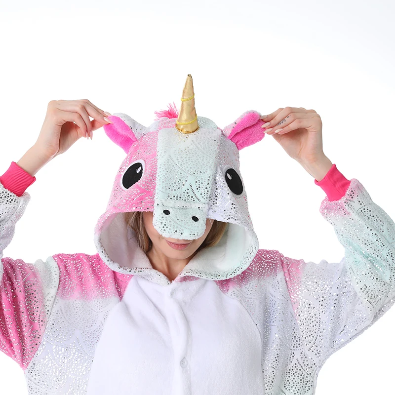Кигуруми Единорог пижамы взрослых животных комбинезоны для женщин В...