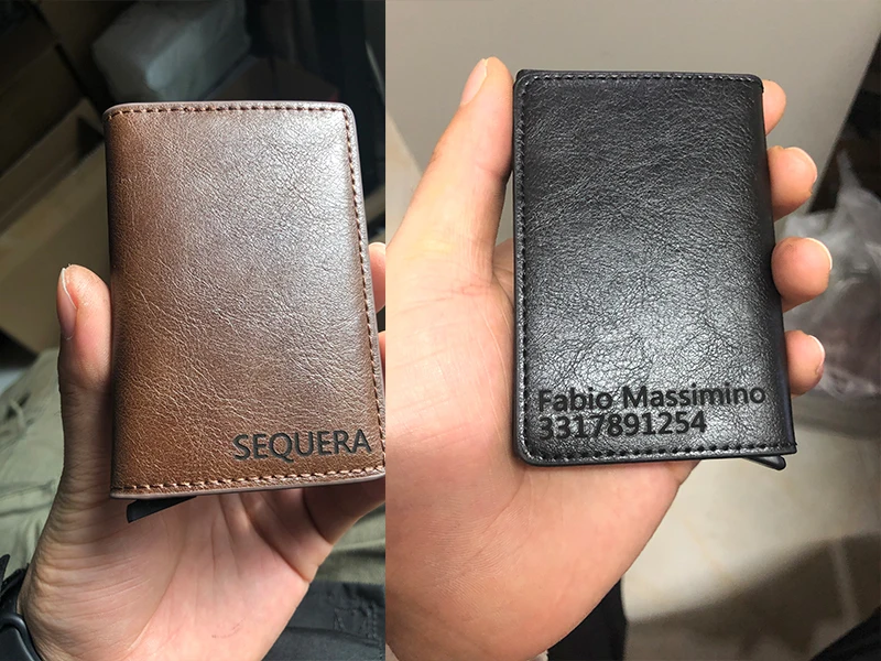 Мужской кожаный чехол для кредитных карт с гравировкой имени и RFID-защитой