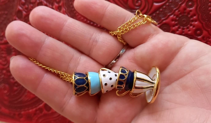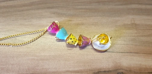 Мне очень нравится! Чашки могут двигаться так, если вы немного беспокоитесь (как я), вы можете играть с ними. Это хорошо сделанное ожерелье. Мне очень нравятся цвета. Это также милый подарок для любителей чая или кофе.