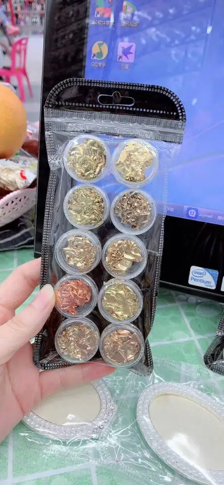 31012 коробок для дизайна ногтей Фольга лист серебро золото медные хлопья массивный блеск для тела дизайн ногтей Фольга лист Золото Серебро массивный блеск