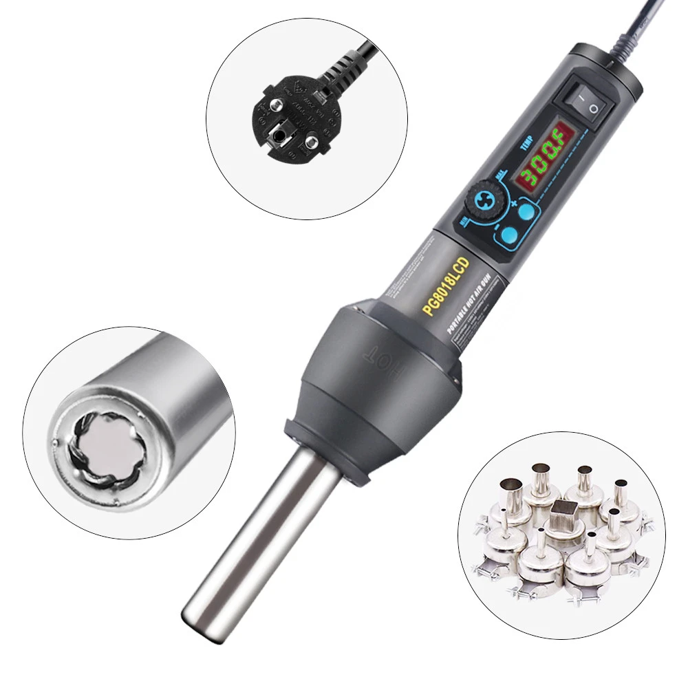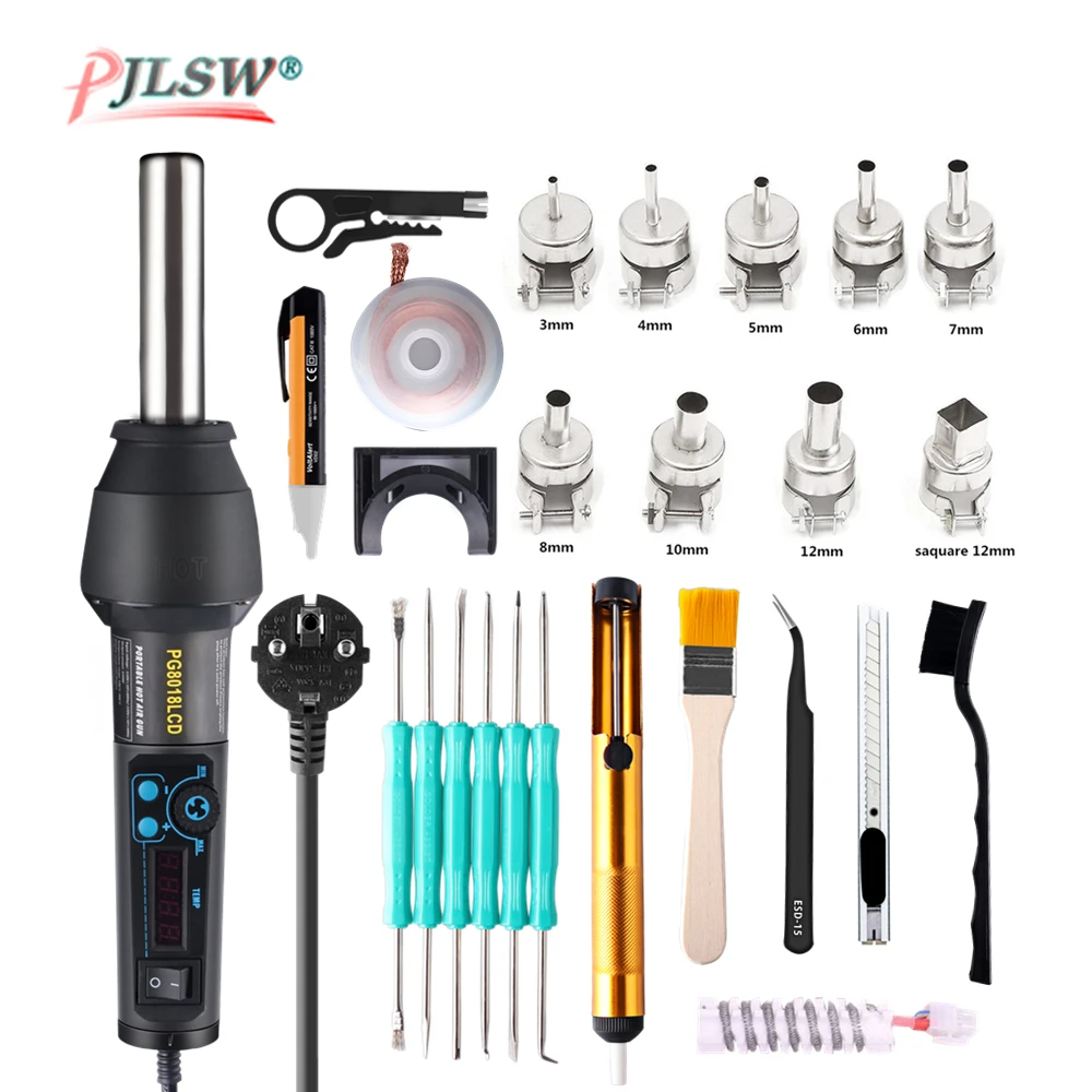 PJLSW портативный комплект теплового пистолета, ветер и температура могут быть настроены по мере необходимости для удовлетворения потребностей различных сценариев.С широким спектром аксессуаров, этот набор оснащен запасными нагревателями, двойными вспомогательными инструментами, антикапельными кронштейнами, антистатическими пинцетами и другими аксессуарами, которые идеально подходят для вас.