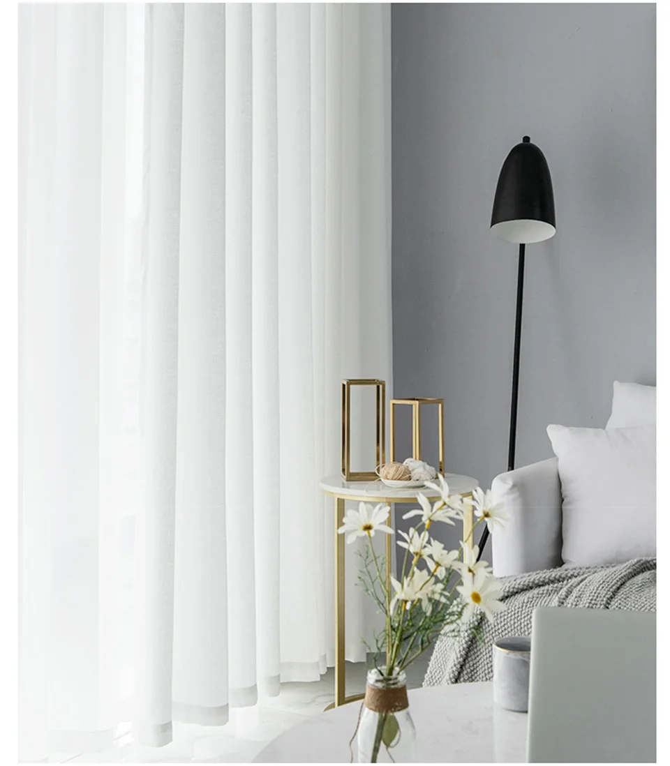 Тюль s для гостиной, спальни, однотонная льняная ткань, прозрачная занавеска для кухни, толстая вуаль, занавески на окна