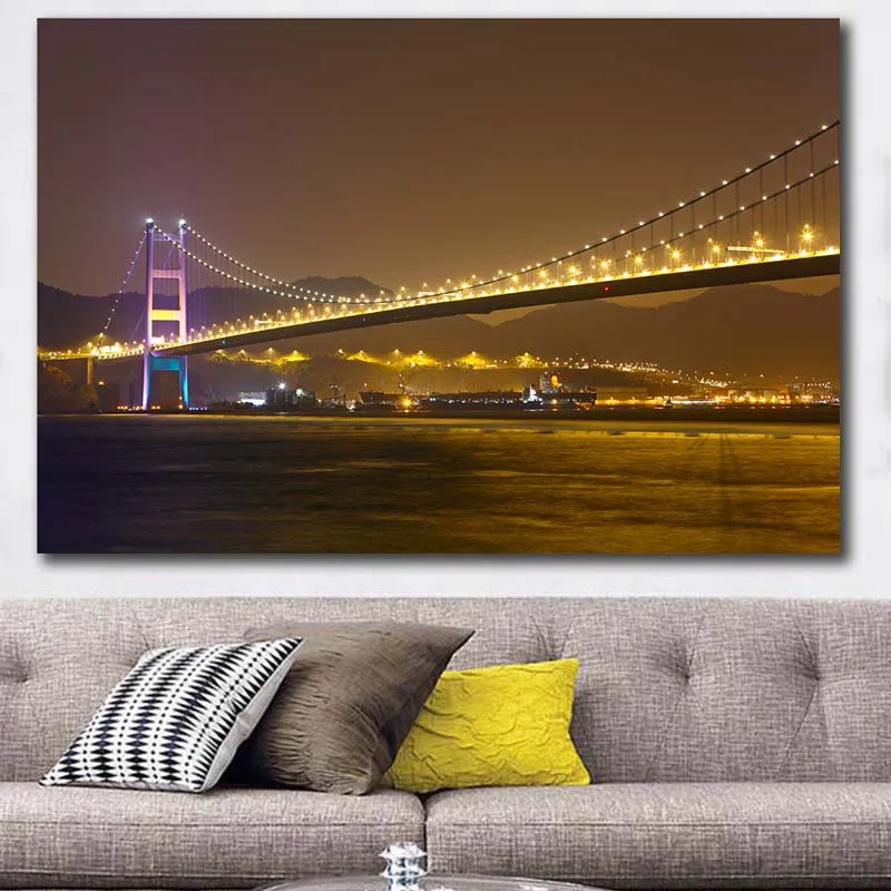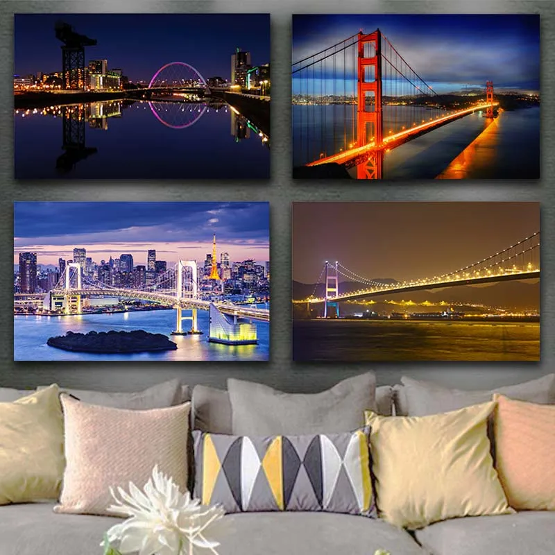 Картина на холсте Ночной город, мост с золотыми воротами, тадж-махал, городской пейзаж, настенное изображение, колесо обозрения, Декор для дома и помещений, картина, печатный плакат