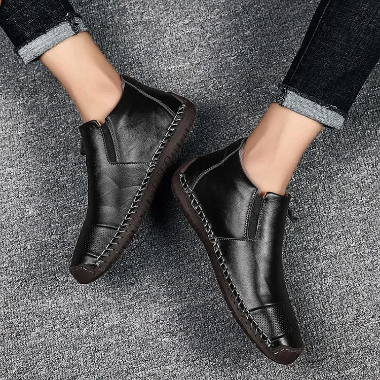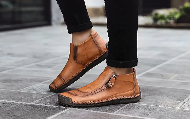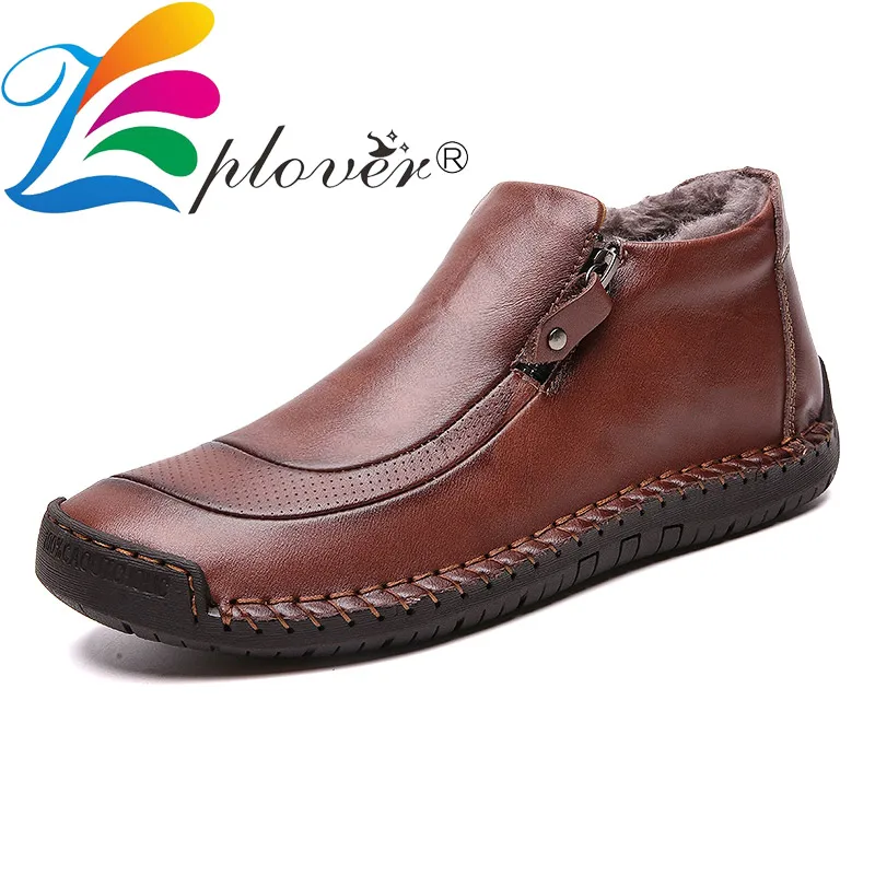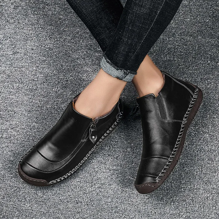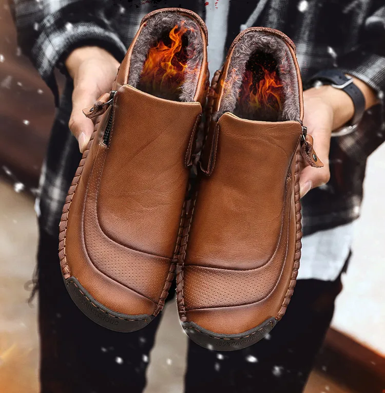 Мужская обувь ручной работы из спилка, теплые плюшевые мокасины на низком каблуке, большие размеры, Zapatos Hombre, зима 2019