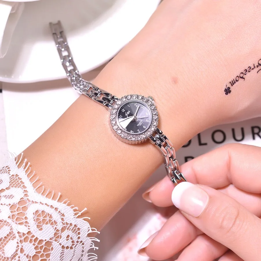 Часы женские кварцевые из нержавеющей стали, с браслетом и кристаллами