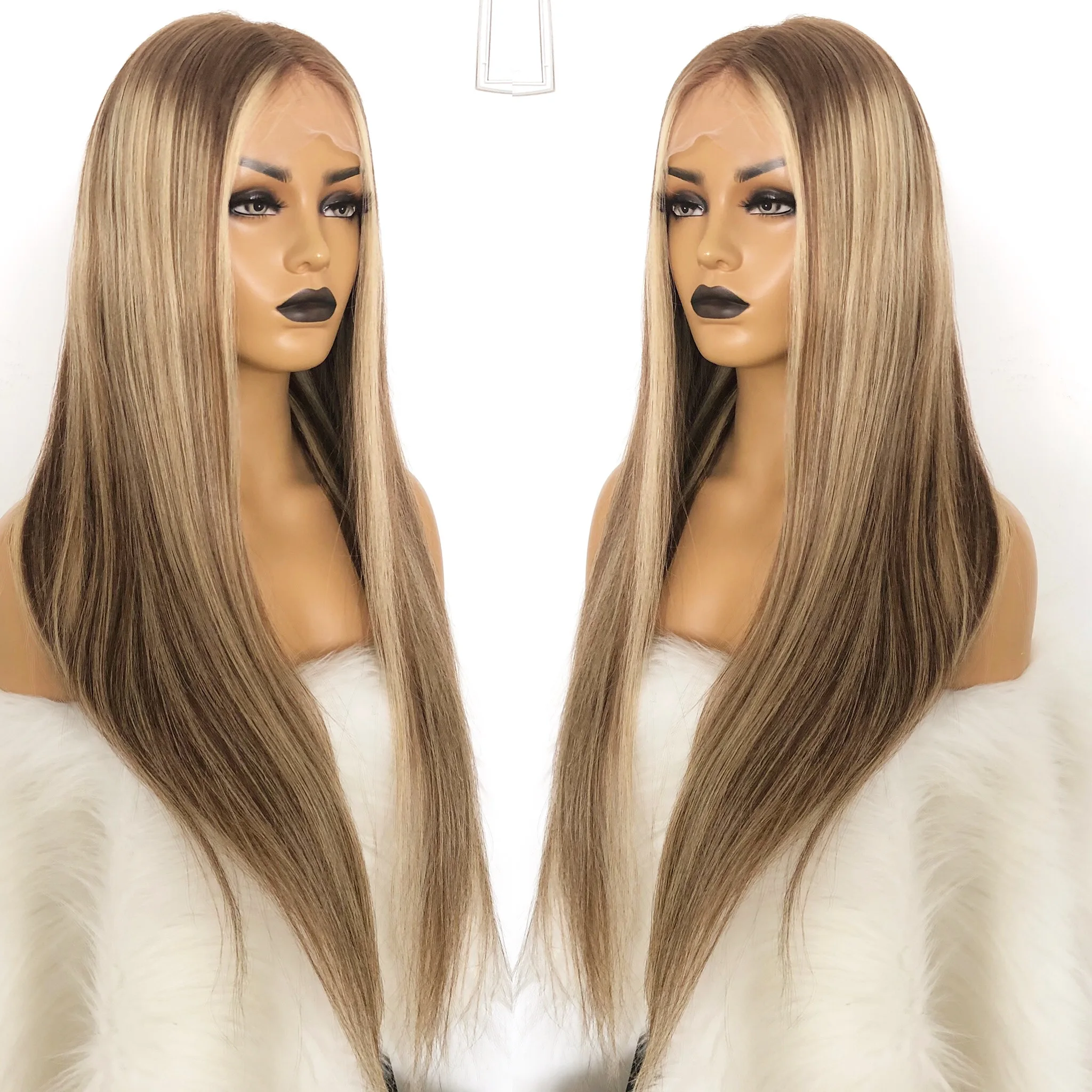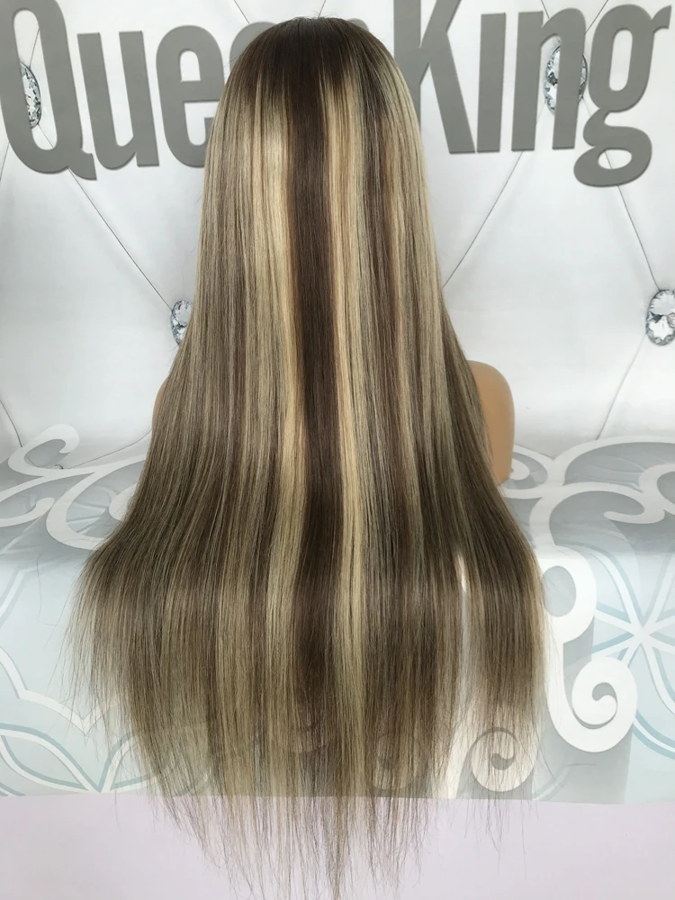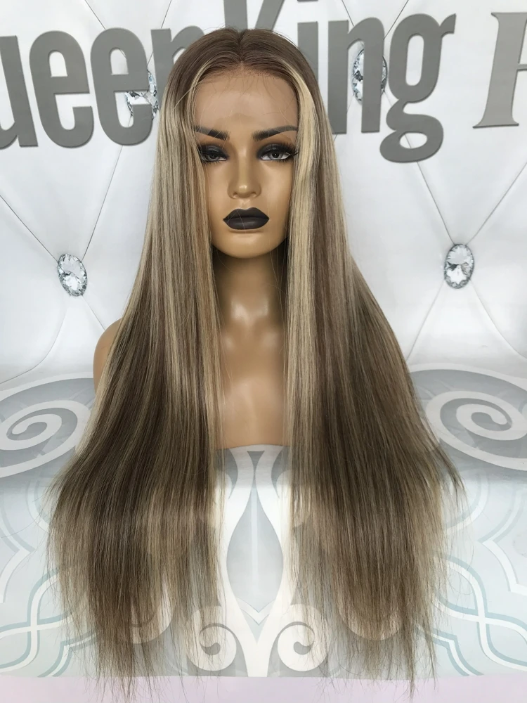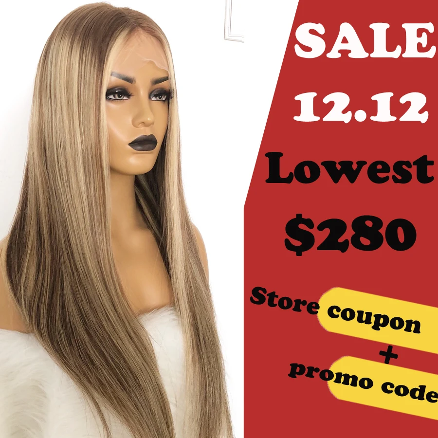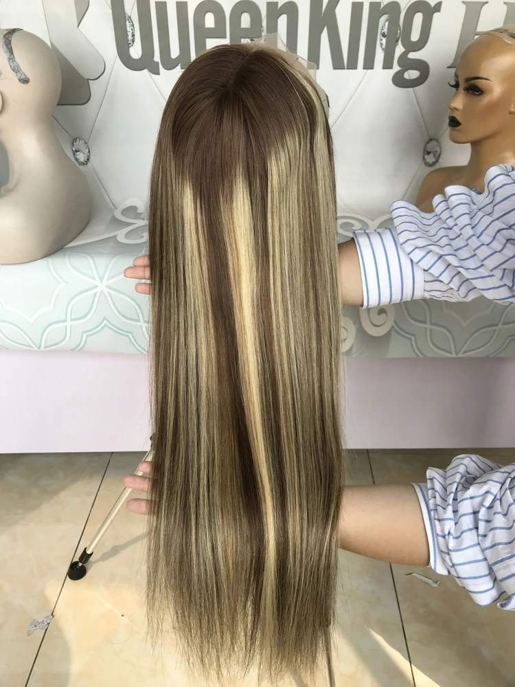 QueenKing волос полный Европейский человеческих волос парик шнурка 150% плотность CAMI Цвет T7724 эффектом деграде (переход от темного к Цвет парики для женщин